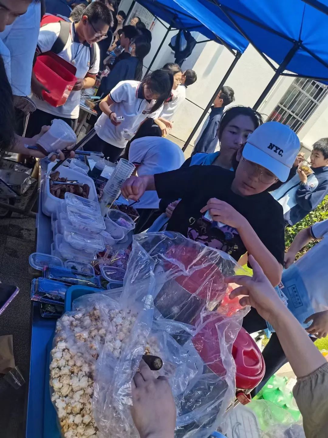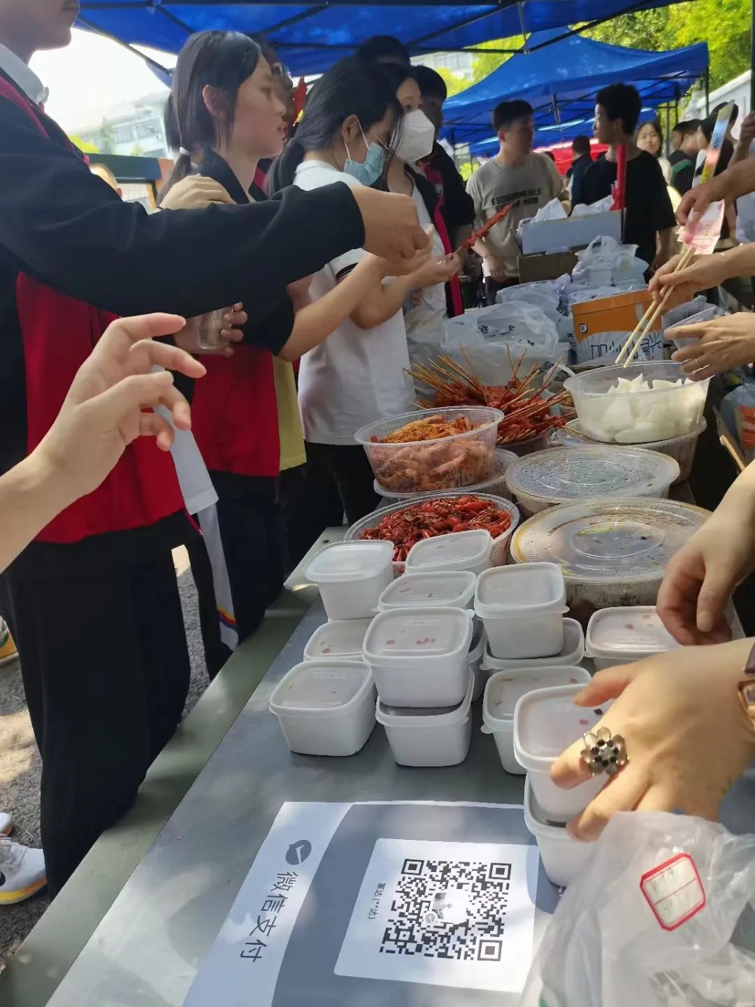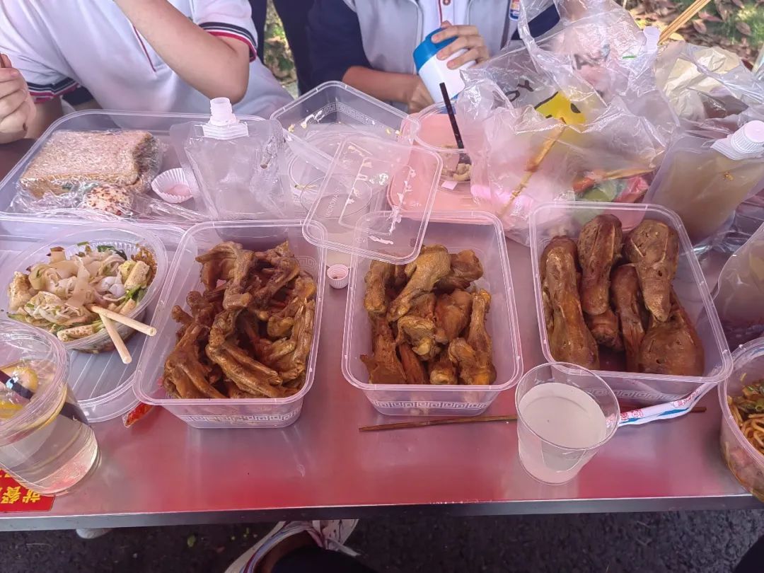 学生们三五成群,在各个美食摊前驻足流连,品尝点评。这么多美食,这个也想吃,那个也想尝,只恨自己不是个大胃王!