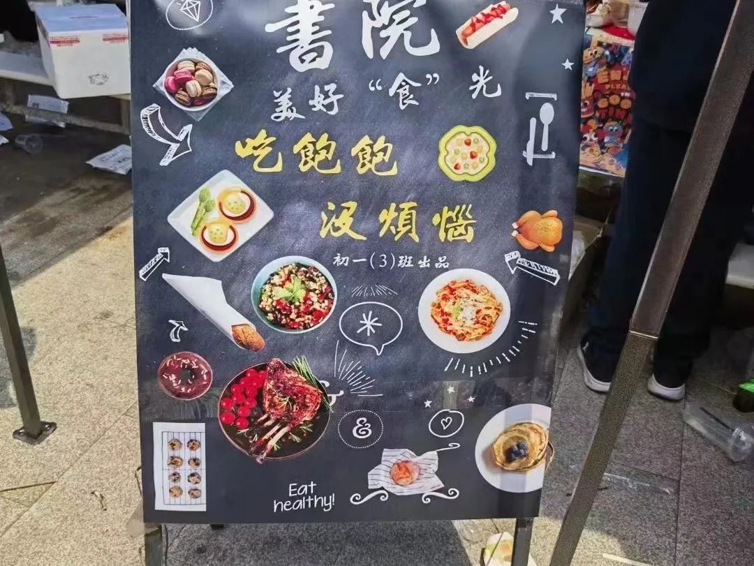 活动前,各班学生充分发挥自己的动手能力并进行精心准备。为了吸引顾客上门,每个班级都绘制了各具特色的美食海报和招牌等,展现了书院学子极强的行动力和创造力。