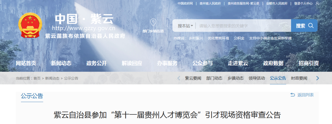 根据《2023年安顺市组团参加“第十一届贵州人才博览会”引才公告》规定,紫云自治县将开展现场资格审查工作,现将相关要求公告如下: