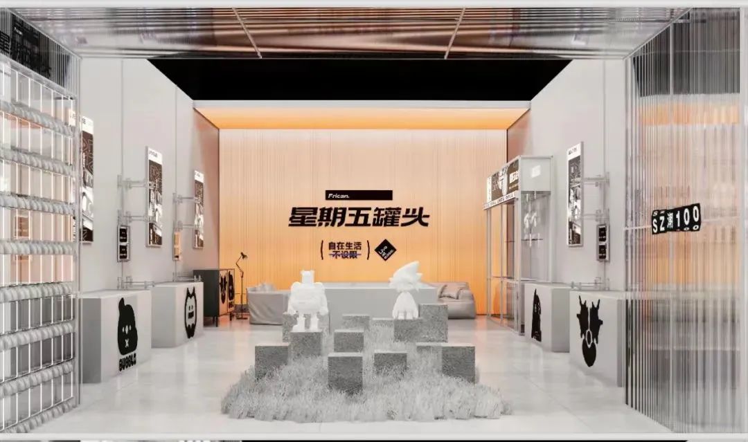 今年,皆可百货联合了潮流生活平台潮100共同联合打造了潮流艺术展区「星期五罐头」,这是一场基于以展区为“罐头”设想,以“潮玩+科技+家居”为概念的“潮流生活方式”概念的主题空间展。