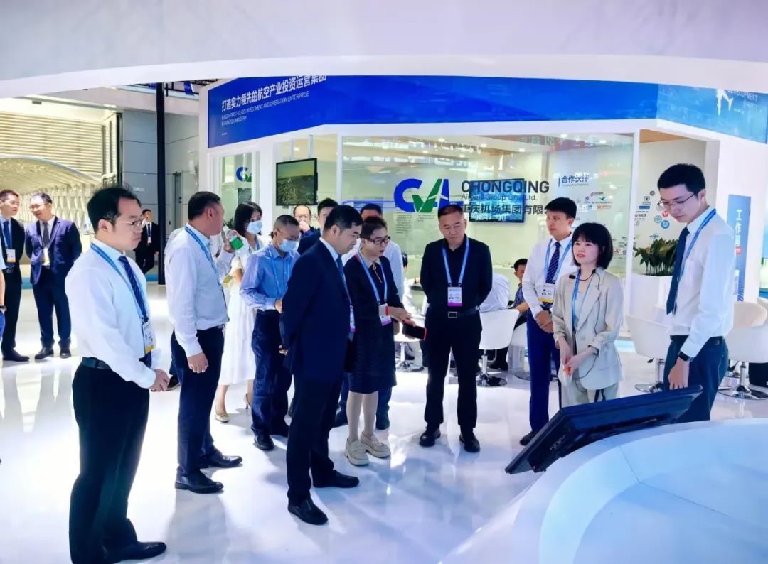 2023年5月18至21日,第五届中国西部国际投资贸易洽谈会(简称西洽会)在重庆国际博览中心举办,西洽会作为我国西部地区国家级国际性盛会,是国家在西部地区的重要外交、贸易合作和投资促进平台。以四川航空、南方航空和重庆机场集团等为代表的民航业内单位受邀参展,重庆机场集团进行了以“新枢纽、新产业、新平台”为主题的现场展览,重点展示了其近年来在机场建设、机场运营和机场运行管理等方面取得的丰硕成果。依托重庆机场集团展位,民航电子科研开发中心的明星产品——数字孪生机场服务平台也得到了重点展示。