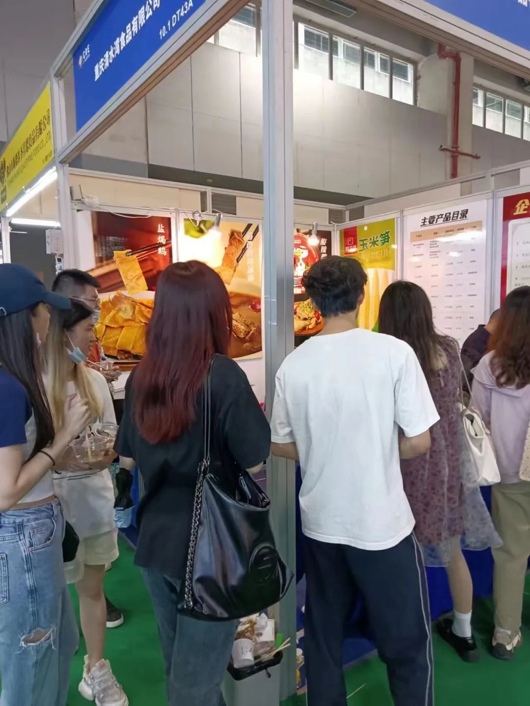 一些大型饭店、像锅圈食汇这样的预制菜头部连锁门店来到展台,细心品鉴索取样品洽谈合作。