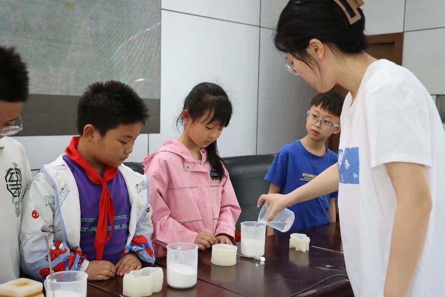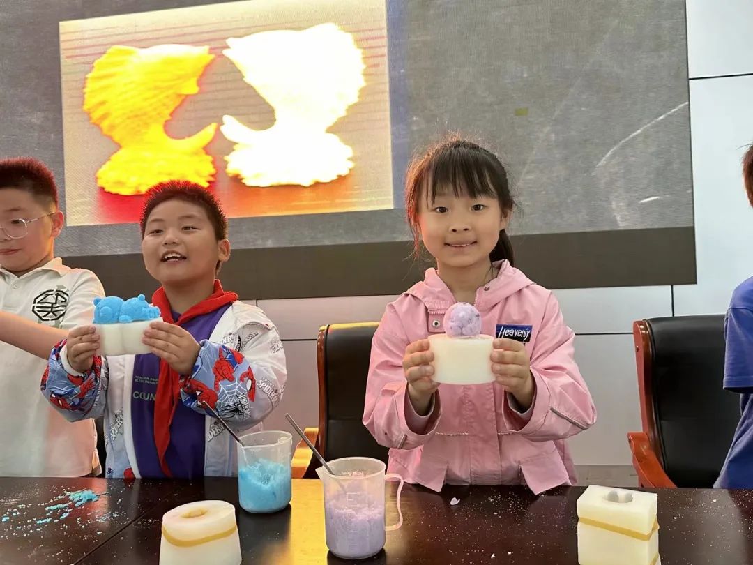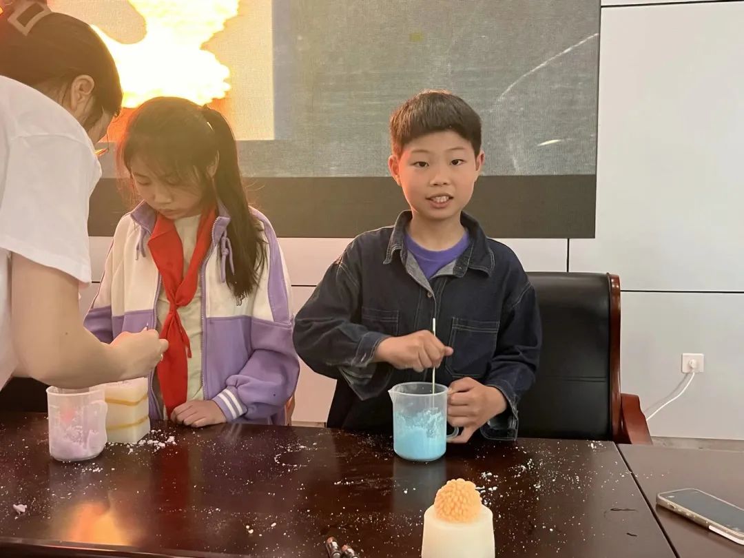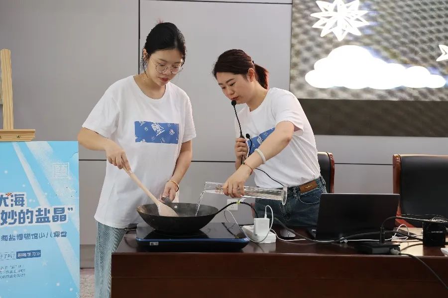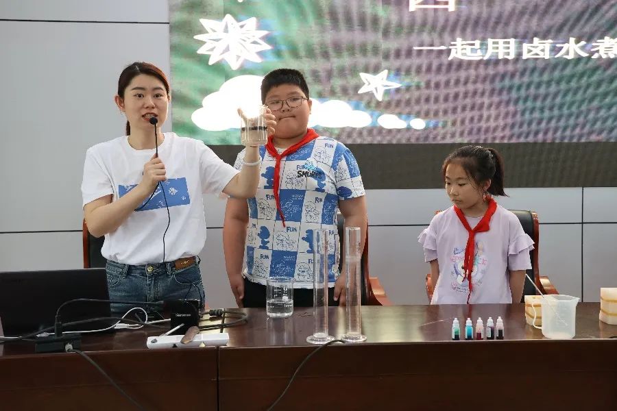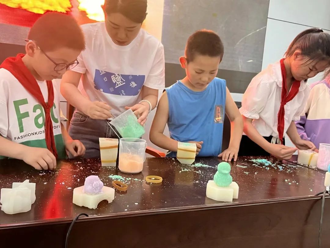 海盐博物馆的工作人员为孩子们介绍了古代盐城制盐有关的历史和制作技法,认识了制盐工具,学生亲身体验食盐炼卤、卤水煮盐的过程,引发了孩子们的强烈兴趣。实践环节中,在工作人员的指导下,学生们自己动手制作盐雕,并给白色的盐染上颜色,通过模具做出造型,最后加热。活动过程中孩子们都积极回答问题,听得聚精会神,热情参与课堂,受益匪浅。