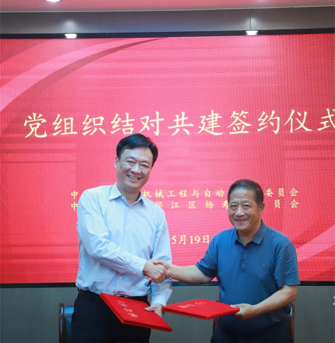李晨介绍了邗江区和杨寿镇的文化历史和产业发展方向。随后,东北大学机械工程与自动化学院党委书记刘建军,东北大学机械工程与自动化学院党委副书记、副院长孙坤,华东交通大学机电与车辆工程学院所长周建民,中国计量大学高级工程师杨雪龙分别介绍了各自领域的科技成果,让参会企业受益匪浅,纷纷肯定了人才的重要性和价值,为杨寿镇企业发展增加了新动力。最后,东北大学机械工程与自动化学院党委书记刘建军和杨寿镇党委书记李晨签署党组织结对共建项目书,进一步发挥党建引领作用,以高质量党建引领双方高质量发展。
