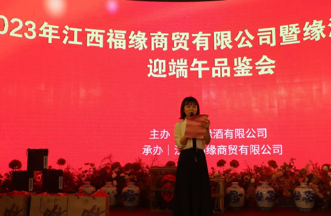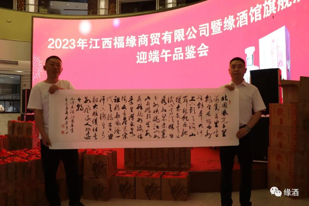 为答谢新老顾客对缘酒长期以来的大力支持,进一步宣传和提升缘酒品牌价值,夯实江西市场基础,5月20日,由中国缘酒有限公司主办,江西福缘商贸有限公司承办的2023年江西福缘商贸有限公司暨缘酒馆旗舰店迎端午品鉴会在江西省九江市信华大酒店举办。九江市经信委原主任陈南桥,中国缘酒有限公司总经理黄灿灿,安徽缘酒文化博物馆常务馆长、缘酒生产基地负责人彭东瑞,中国缘酒有限公司营销总经理钱颖,江西福缘商贸有限公司总经理罗义勇,北京诗酒缘文化艺术院院长、缘酒创牌人黄晔,当地缘酒经销商、终端客户300余人参加此次活动。活动首先由黄灿灿代表缘酒企业致辞,九江市经信委原主任陈南桥发表讲话,江西福缘商贸有限公司总经理罗义勇作答谢词。在致辞中,黄灿灿对本次迎端午品鉴会的举办表示祝贺,并强调缘酒在安徽省会合肥依托中国缘酒有限公司和安徽一线缘有限公司重点塑造中国缘酒、缘酒和一线缘酒品牌,始终贯彻“以文化酿造美酒”的经营理念,江西福缘商贸有限公司在九江市场紧紧围绕这一核心,通过主攻团购客户,主打高端市场,使得缘酒品牌文化在九江市场得到彰显,希望缘酒在江西市场通过罗总等人的自身努力和广大消费者的支持,能够进一步巩固和拓展江西市场占有率,使缘酒在九江市场的占有率与日俱增。活动现场大家品酒话缘,欣赏精彩的歌舞表演,同时还进行了抽奖活动,共计赠送安徽缘酒文化博物馆收藏名人名家书画作品200幅。现场订单接连不断,直接销售中国缘酒、尊藏系列、尊贵系列缘酒2000余件。异常火爆的订货会凸显了缘酒企业以“文化酿造美酒”经营理念的独特魅力。江西福缘商贸有限公司公司自2018年与安徽缘酒集团合作以来,一直贯彻执行厂家经营思路,加大圈层团购营销,目前已经形成完备的团购分销体系,大大提升了缘酒文化品牌在九江的知名度和影响力,不仅体现出经销商对缘酒经营模式的理解与合作,对缘酒文化品牌的重视,更是提升了缘酒品牌九江市场的影响力和美誉度。