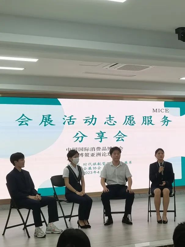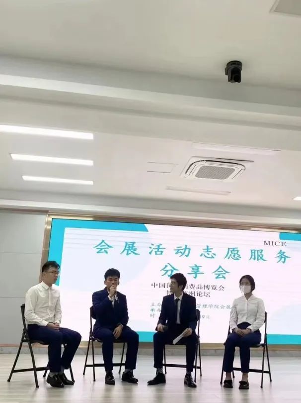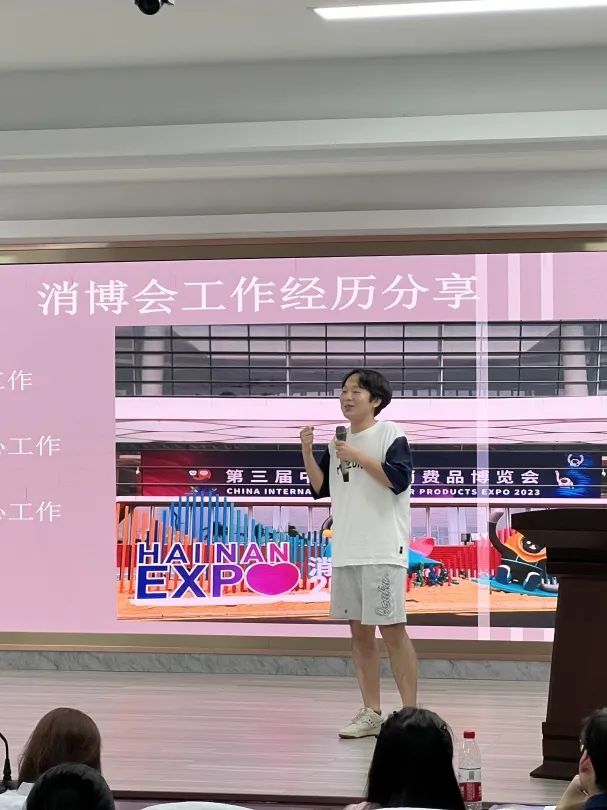 分享会第一环节,由6名不同年级的同学分享来自消博会与博鳌亚论的志愿服务经历,他们来自不同志愿服务岗位,经历与收获不尽相同,但都抱有共同的目的,那便是将知识学习与实践活动相结合,努力做到“知行合一”,夯实专业基础,提高专业技能,向着更好的未来进步。