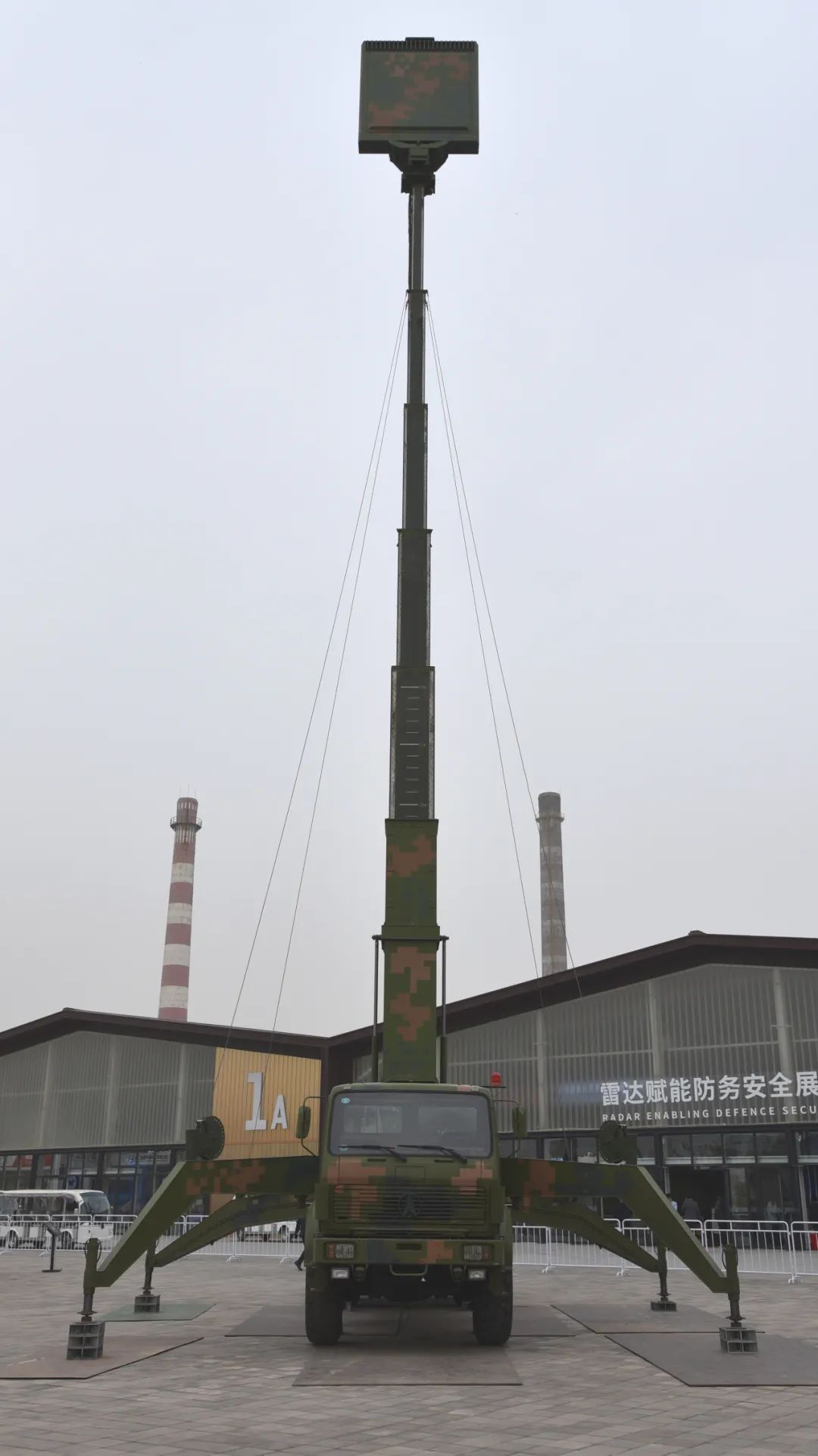 现场的这型YLC-12雷达本质上算是一款低空补盲雷达,通过举升实现对低小慢目标更远距离的探测,相较于地面直接布设,20米左右的假设高度可提升探测距离50%左右,这对于后续防空作业意义重大。另外,YLC-12作为一款C波段雷达,其典型雷达频率约为5.5GHz,波长约为5.5厘米左右,该波段处在X波段和S波段之间,兼具二者优势,对小目标的探测性能好,探测精度高,同时探测距离也比较远。同时该雷达采用方位机扫、二维相扫的全固态相控阵体制,因此纵使其雷达天线尺寸不算大,却依然能实现大范围的目标探测。该雷达可实现对中低空突防的战斗机、直升机、无人机、巡航导弹等目标的探测,还可兼顾部分反炮兵雷达作业能力,功能十分强大。