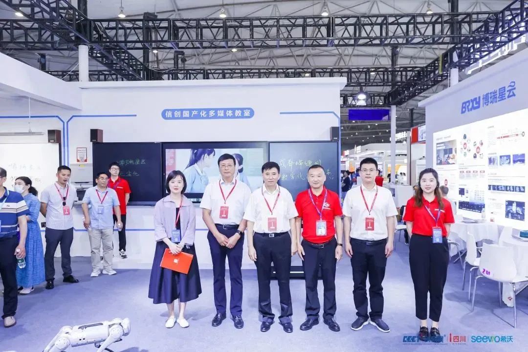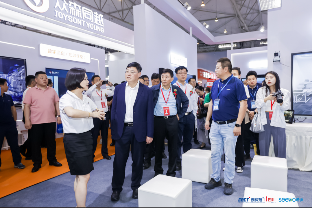 19日,中共四川省委教育工委副书记,教育厅党组成员、副厅长崔昌宏,中国教育装备行业协会常务副会长夏国明,四川省教育装备行业协会会长张林祥,四川省教育信息化与大数据中心(四川省电化教育馆)主任(馆长)刘汉涛,四川省学校国有资产与教育装备中心主任王方文,四川省学校国有资产与教育装备中心六级职员、工会主席,四川省教育装备行业协会秘书长代倩一行巡馆