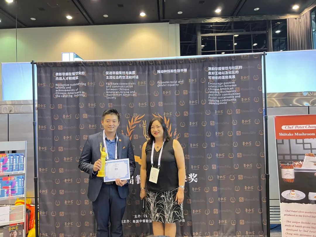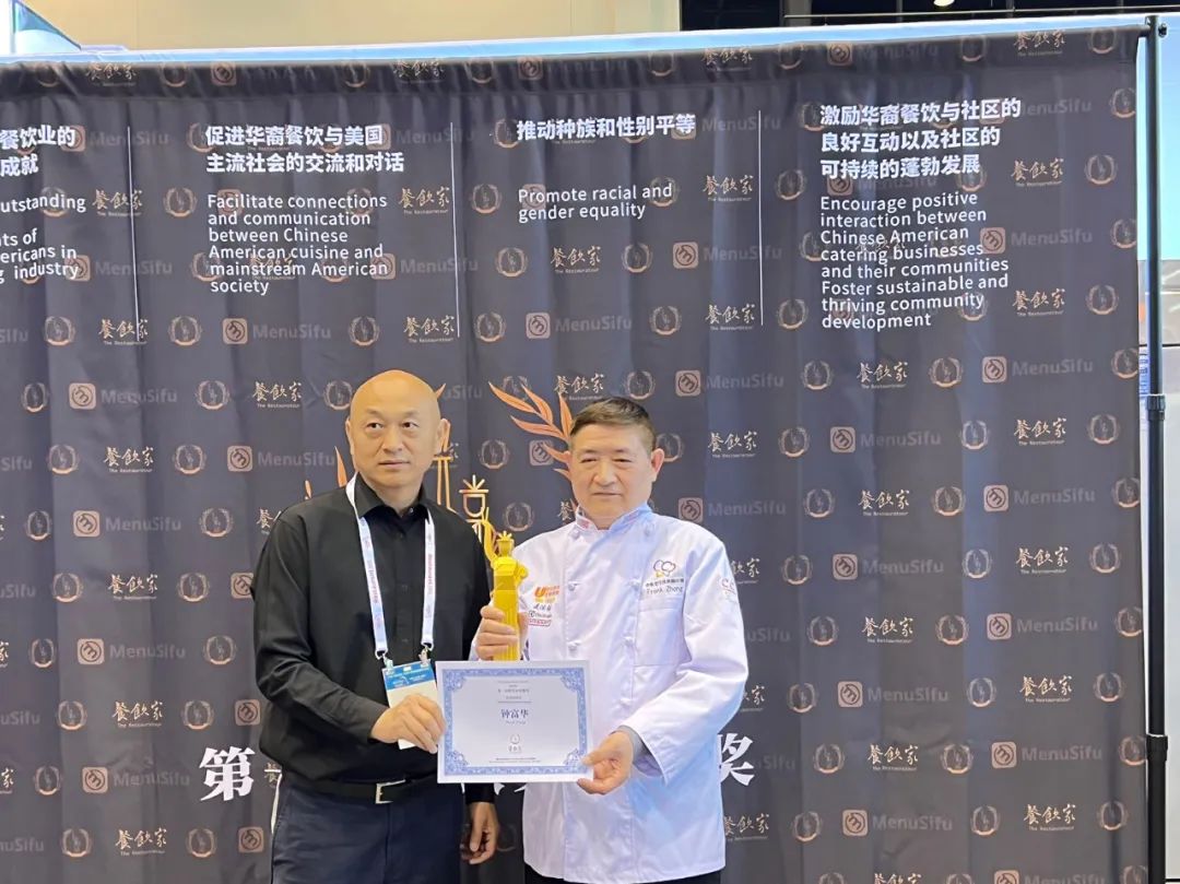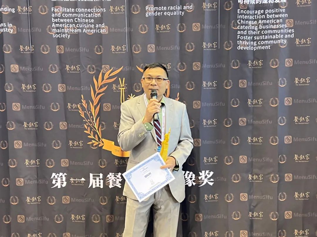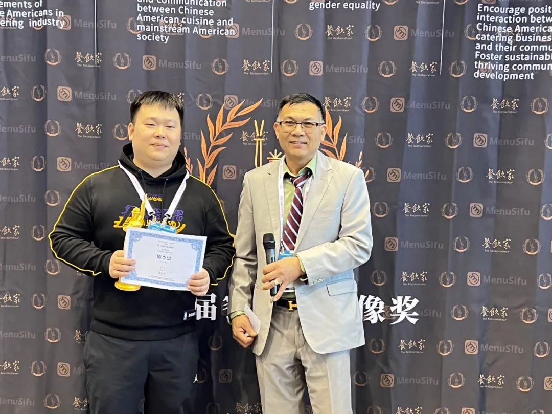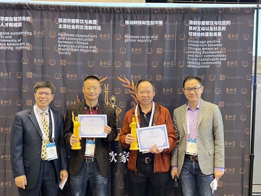 美国中餐联盟理事会主席,中餐届的元老朱天活先生和芝加哥华商会会长Jimmy Lee揭晓获奖者名单并为到场的获奖者颁奖