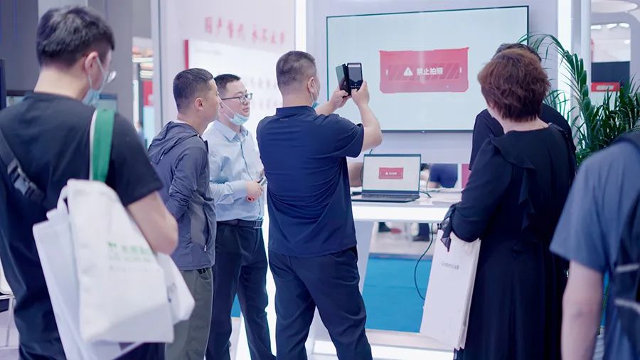 核心技术推动高质量发展。展会现场对最具吸引力、最具实力的拍照行为识别、人脸动态打码及视频水印印刻等技术进行了重点展示及现场交互体验。此类技术可在传统的视频数据防泄密功能基础上提供满足《中华人民共和国个人信息保护法》的相关要求,当公共安全视频监控数据用于非公共安全业务场景时对公民隐私信息起到有效的保护,且针对涉密场景、重要会议场景及指挥中心场景下视频翻拍偷录行为起到很好的防护效果。与会领导、专业观众对相关技术进行了亲身体验并与现场接待专家深入交流探讨,给予了高度认可。