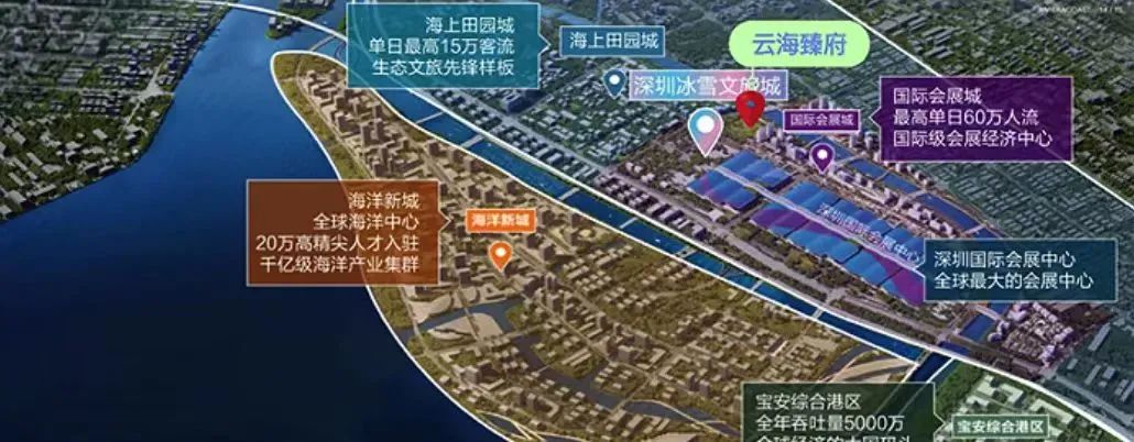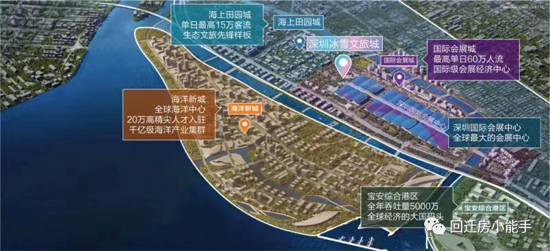 根据规划,海洋新城位于珠江口东岸,深圳大空港规划区西北部,毗邻全球第一大会展中心深圳国际会展中心,规划面积7.44平方公里。