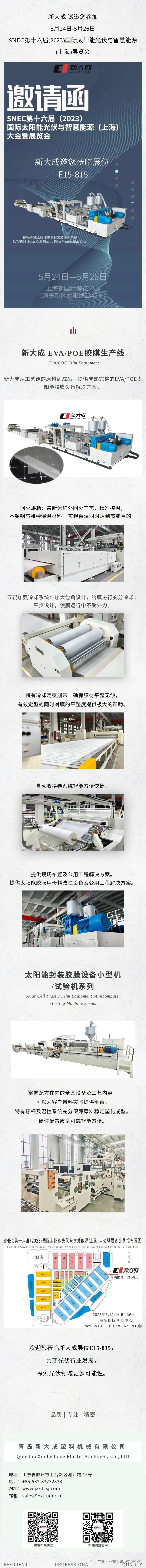 展会邀请 | 新大成邀您共赴盛会 SNEC2023国际太阳能光伏与智慧能源展览会
