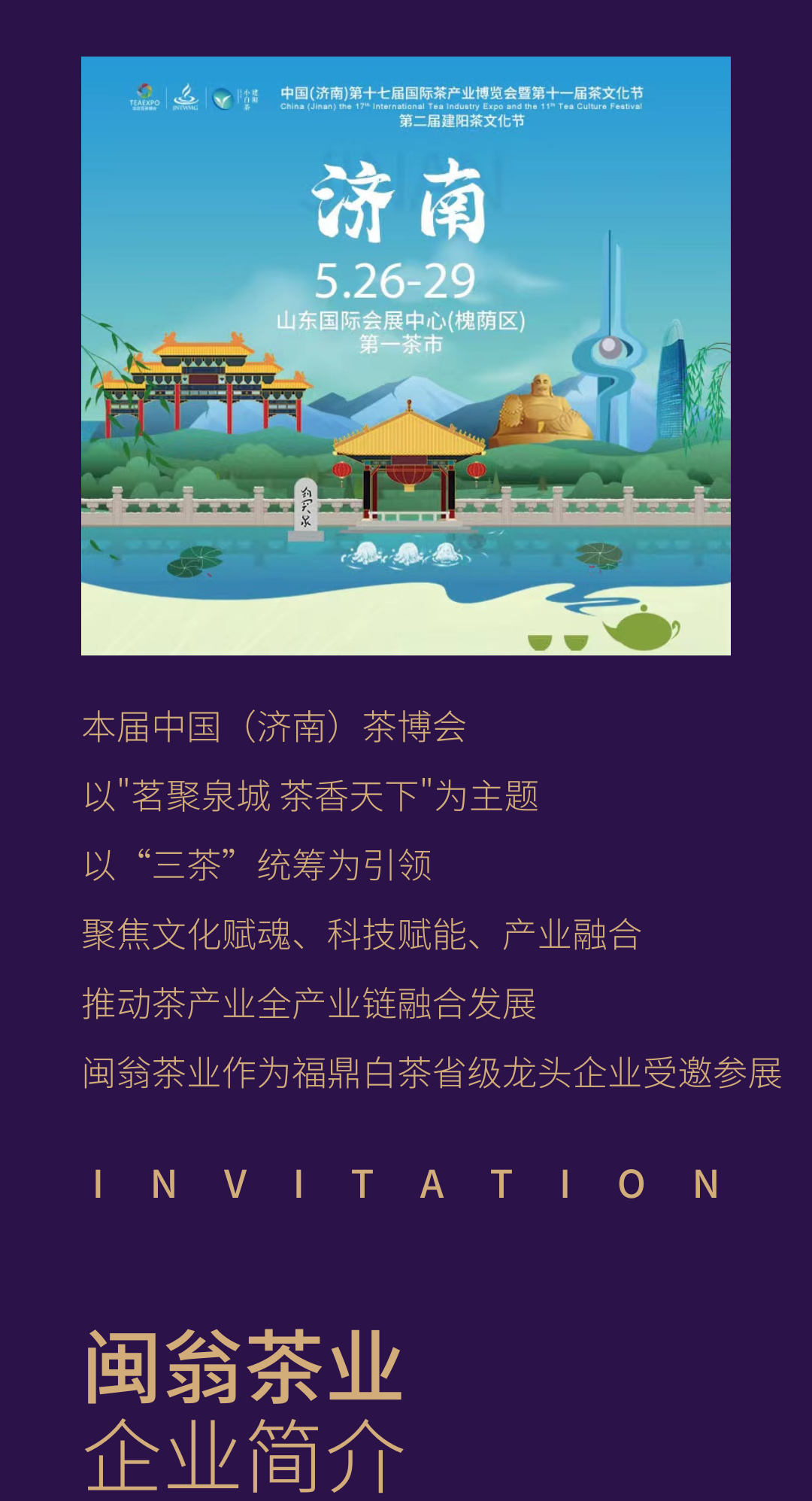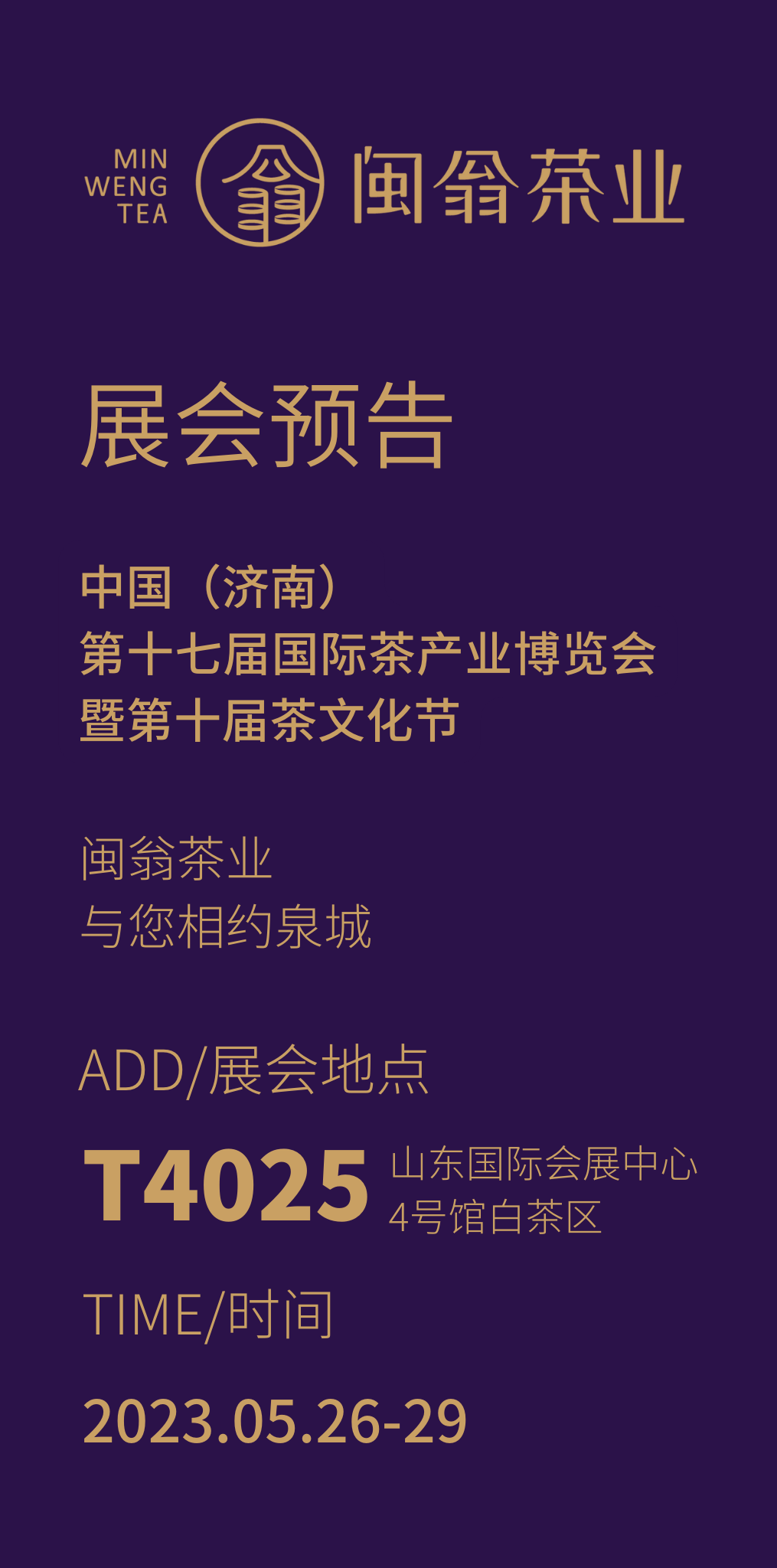 展会预告|闽翁茶业与您相约中国(济南)第十七届国际茶产业博览会
