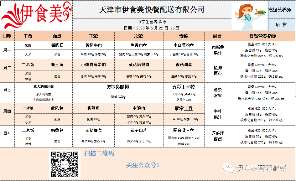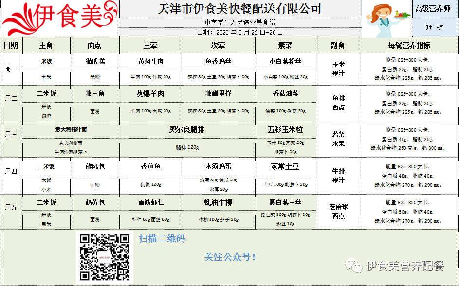 根据天气变化、市场原材料供应情况,菜品会有微调,以下菜谱展示仅供参考,具体用餐情况请以每天实际送餐为准,感谢理解!