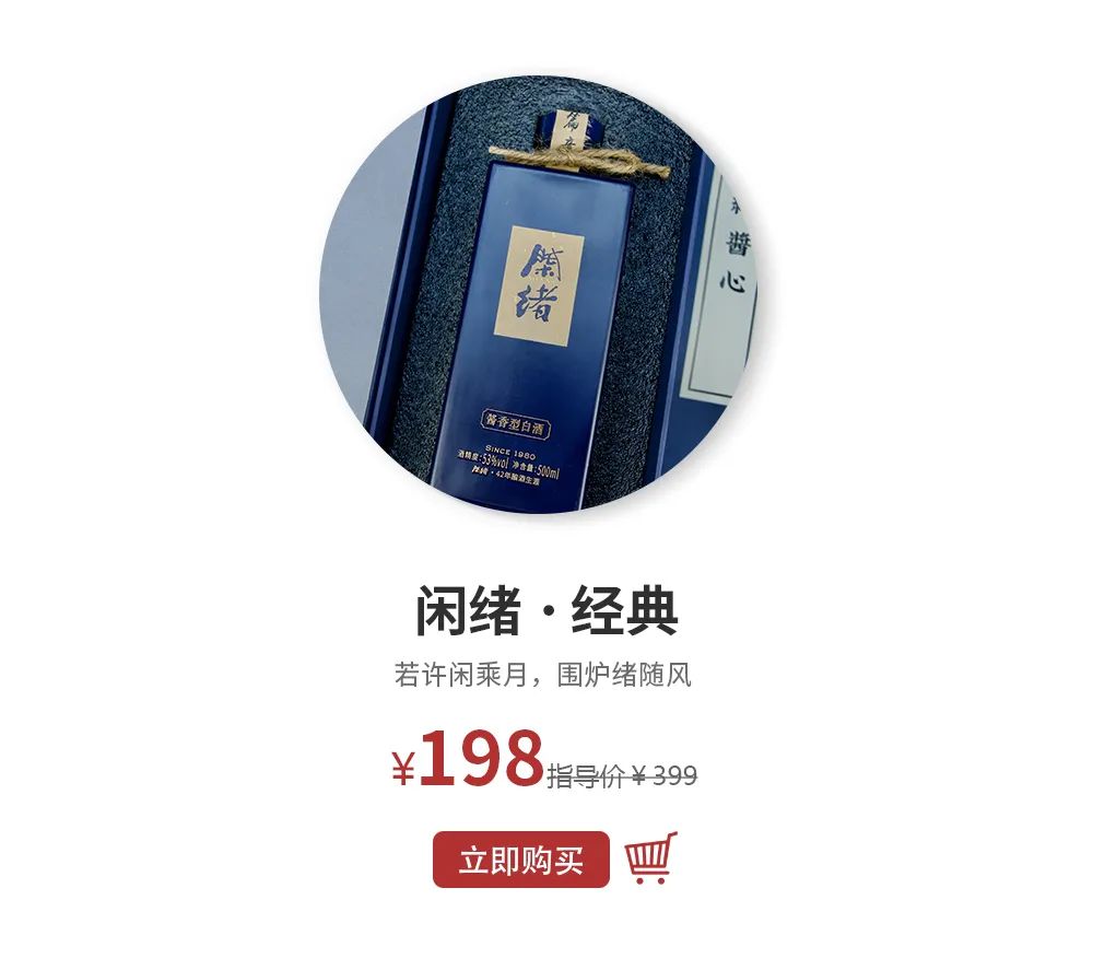 在茅台镇多番寻访才定制而来——闲绪•经典。从原料的优良、工艺的精湛,到入口的绵柔,甚至是包装,都不输某台。亲朋聚会摆在酒桌上,倍儿有面子!最为关键的是:性价比超高!