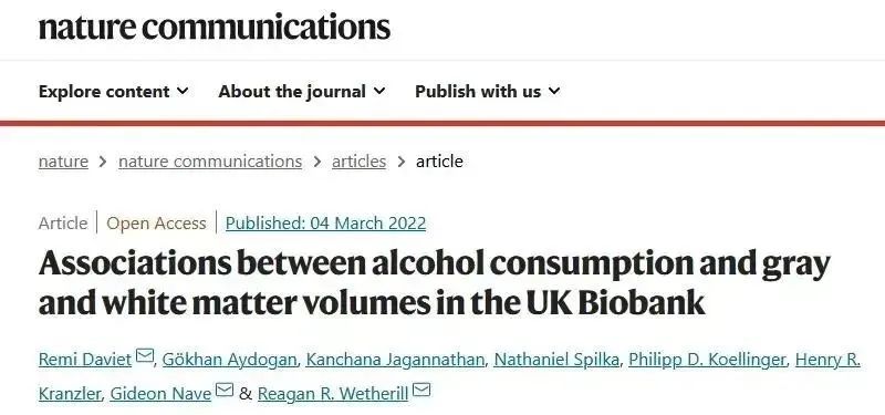 就在近日,《自然》子刊《自然·通讯》上刊登了一项研究,这项研究是美国宾夕法尼亚大学研究团队对英国36678名40~69 岁健康成年人的数据作为分析,通过调查问答的方式,让这些参与者在调查中回答自己每周或每月消耗的酒精单位数量,以此来研究饮酒与大脑的潜在关联。