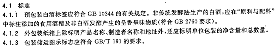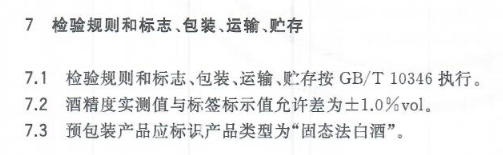 GB/T 10346-2006 《白酒检验规则和标志、包装、运输、贮存》对白酒标签规定如下: