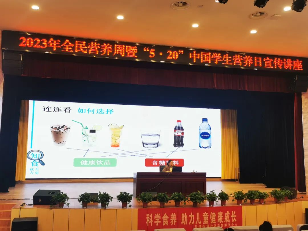 2023年5月20日是第34届“5·20”中国学生营养日,今年的宣传主题是“科学食养 助力儿童健康成长”。5月17日下午,盐都区疾病预防控制中心和盐渎街道社区卫生服务中心联合为我校学生带来了一场别开生动的健康教育讲座。来自盐城市第三人民医院的张雨医生以讲授与提问相结合的方式,为学生们进行了营养膳食知识普及和健康观念以及健康生活方式的宣传。学生们在轻松愉悦的氛围中学到了不少健康成长的小秘诀。