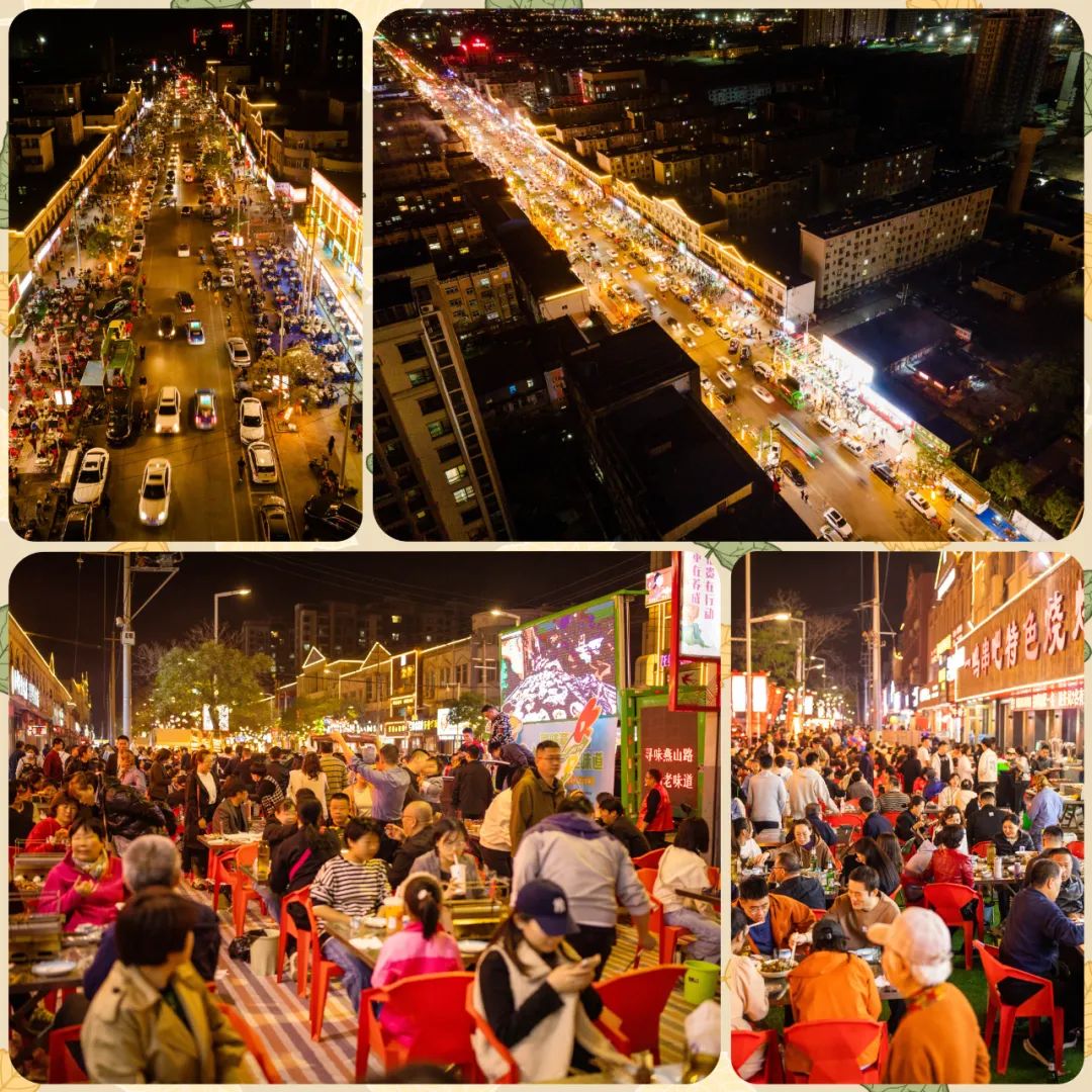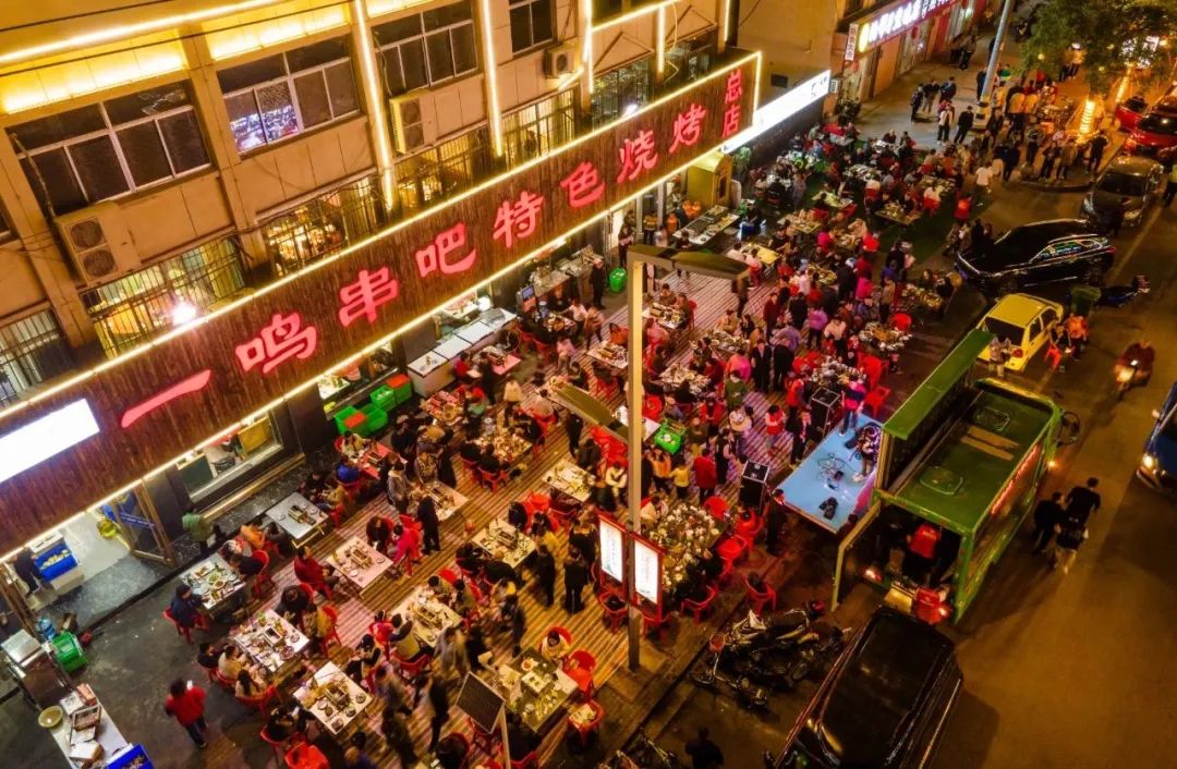 每到夜晚,美食街华灯璀璨、人潮涌动