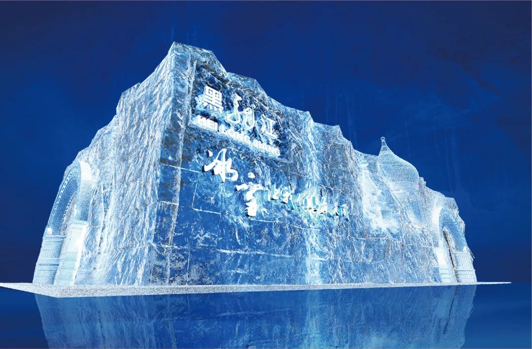 展区面积共600平方米。以冰雪为主线,展馆外立面采用水晶树脂材料模拟冰雕设计而成的人文景观,馆内则以冰雪溶洞等元素整体造景,参观者可以坐在模拟雪橇上观看全景电影和民族特色表演,还可以参与冰壶、滑雪等互动游戏项目,展示了黑龙江独特的“绿色生态”、“冰雪旅游”和“人文精神”。