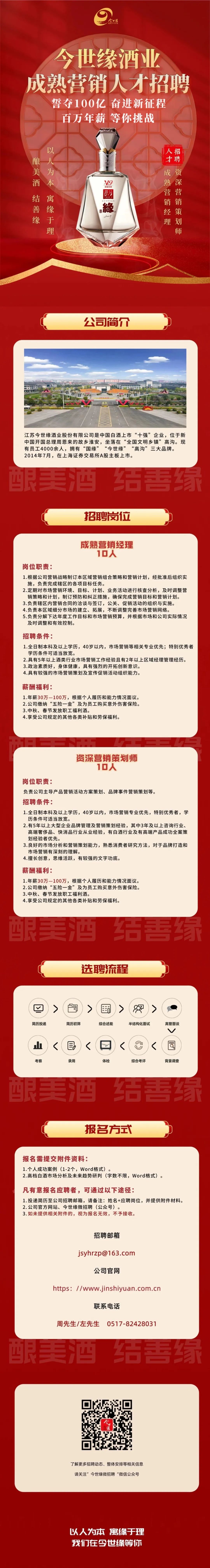 挑战百万年薪,今世缘酒业成熟营销人才招聘!