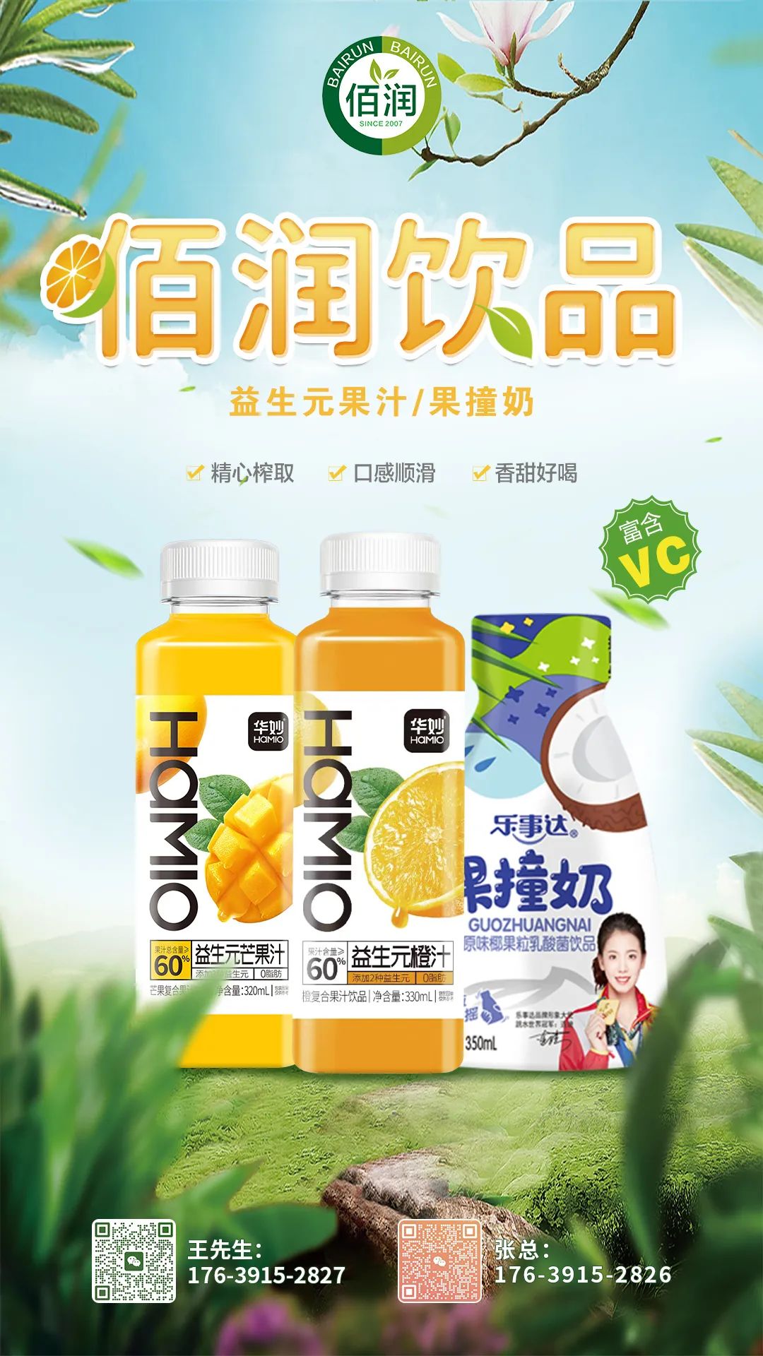 随着饮品销售旺季正式到来,不少经销商仍需要代理新产品打开新市场,而佰润饮品,不仅拥有高质量的创新产品,还是相互扶持、共谋发展的合作伙伴。诚邀经销商共赢未来!