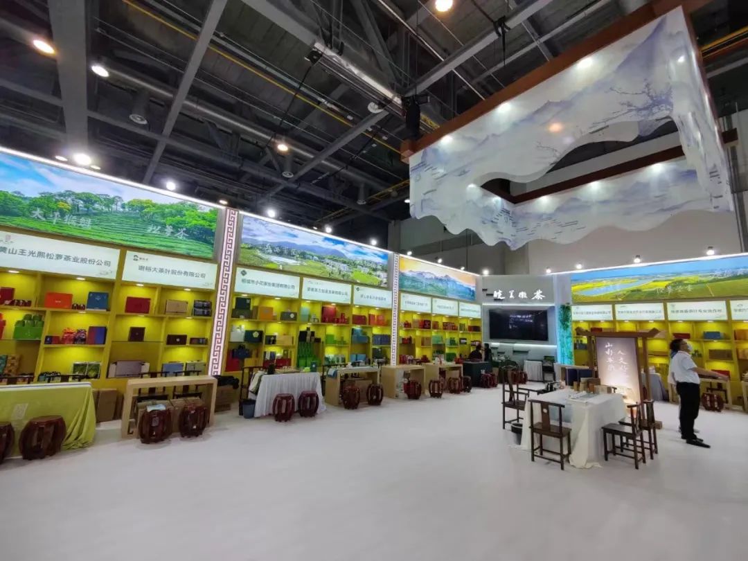 本届国际茶博会以“茶和世界 共享发展”为主题,创新引入亚运、体育、非遗等元素,设置成就展区、品牌展区、特色展区、推介活动区等4大展区,共有来自国内外的近900家知名茶企参展,全面展示我国茶产业发展成就,推介新品种、新技术、新装备、新业态,营销茶品牌,弘扬茶文化,促进茶贸易。安徽省展区位于博览中心3B馆T511,省供销合作社和黄山、六安、安庆、池州、宣城5个茶叶主产市17家知名茶企参展,共有黄山毛峰、太平猴魁、六安瓜皮、祁门红茶等15个茶叶区域公用品牌数百个优秀茶产品参展。展区通过图文、实物、多媒体等展陈形式,运用声光电,融入皖山皖水、马头墙、迎客松元素,展示徽茶历史底蕴及文化精华,突出安徽省茶产业发展成就。 △ 安徽展区