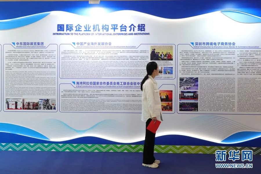 2022年,沧州市共有400余家企业与海湾地区产生贸易往来。图为聚势谋远展区两湾进出口贸易板块。新华网 王立鹏摄
