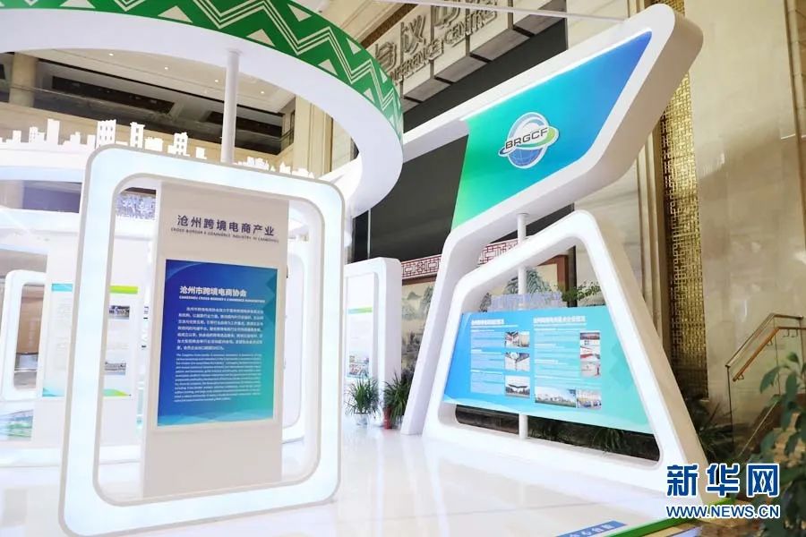 2022年,沧州获批设立中国(沧州)跨境电子商务综合试验区。目前,沧州有跨境电商及相关企业1300余家。图为海纳百川展区沧州跨境电商产业板块。新华网 王立鹏摄