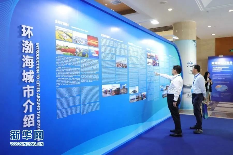 在聚势谋远展区,环渤海城市介绍板块以“特装墙+画面”的形式展出,参观者在这里可以了解环渤海城市情况。新华网 王立鹏摄