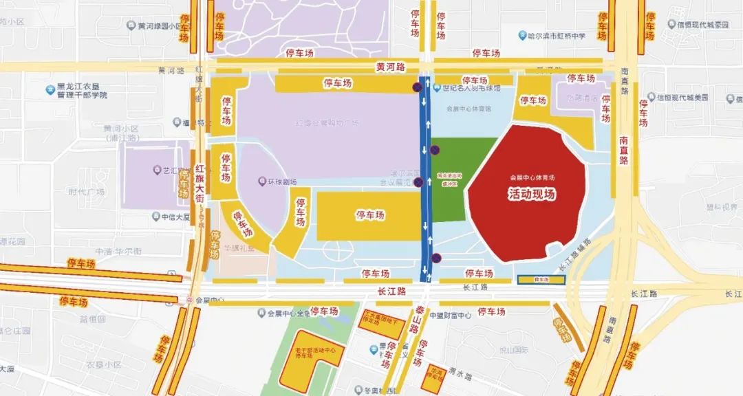 因会展中心体育场周边停车泊位有限,建议采取公共交通方式前往,活动周边可供停放车辆区域如下: