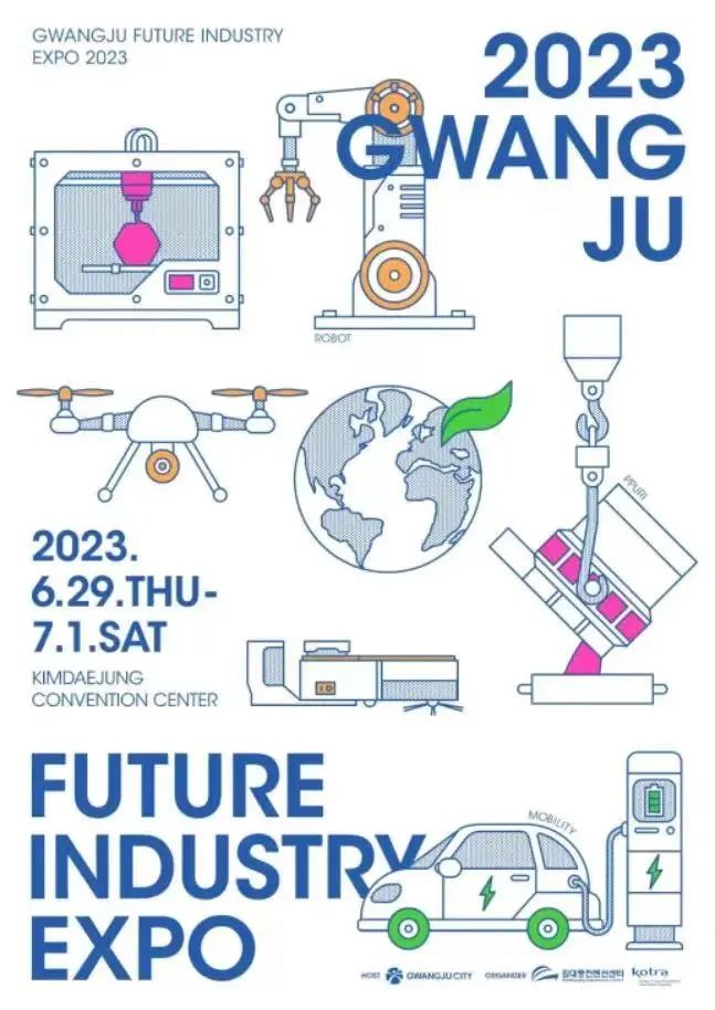 由大韩贸易投资振兴公社(KOTRA)和韩国光州金大中会展中心共同举办的韩国光州未来产业展览会,将在2023年6月29日-7月1日在韩国光州举办,该展览会由【国际制造业技术展】,【国际IoT机器人展】,【国际绿色汽车展】三个展会组成,涵盖了制造业技术领域,loT机器人领域以及国际绿色汽车领域等多个领域。