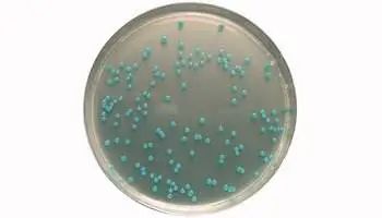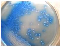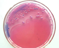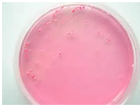 特征描述: 大肠杆菌典型菌落为蓝色至紫色,大肠菌群为粉红色菌落,其它细菌为无色菌落。