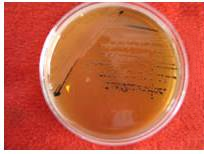 特征描述: 沙门氏菌在 37 ℃ 培养18-24小时后,呈无色透明菌落有黑色中心。