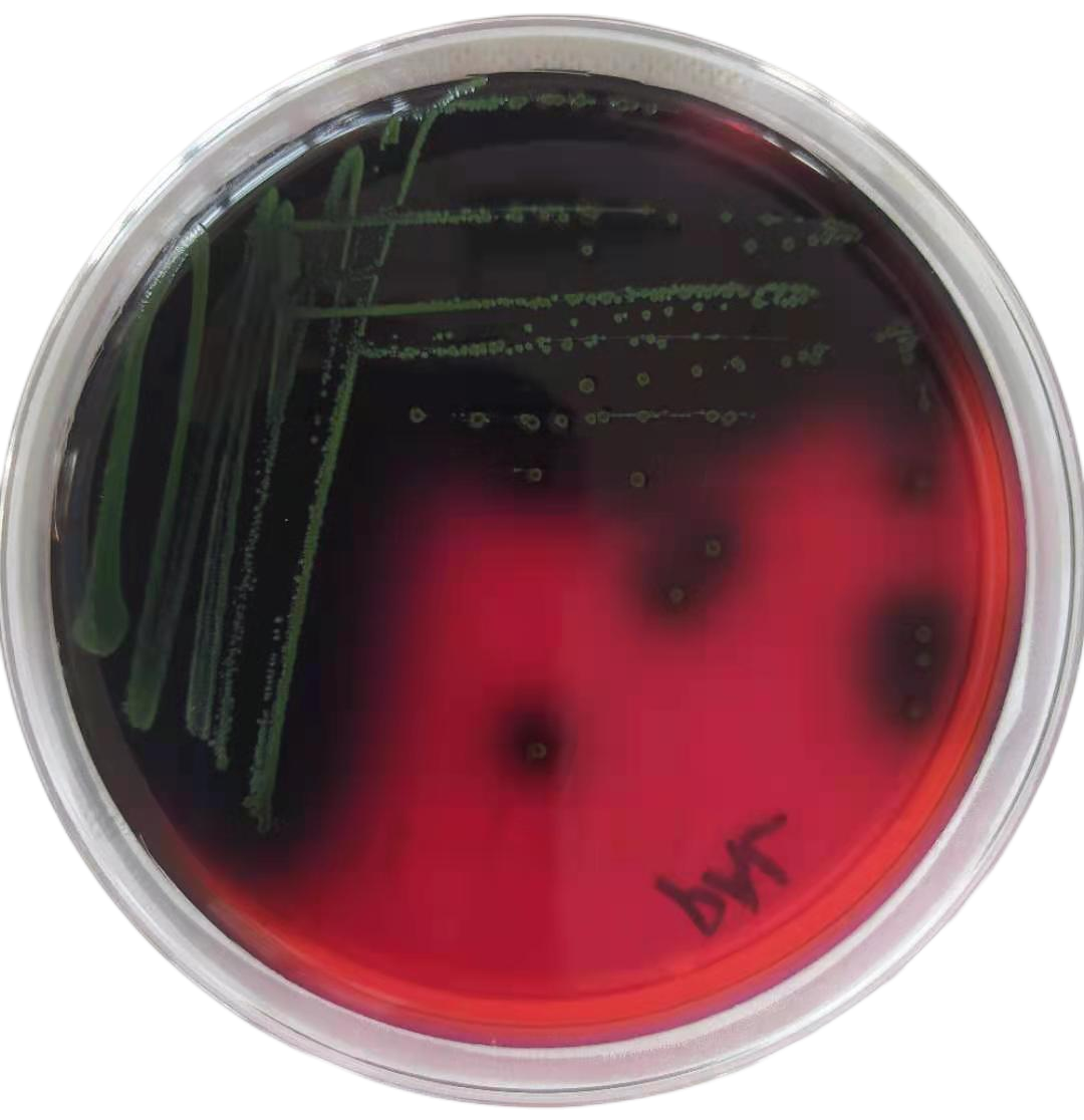 特征描述: 李斯特氏菌在35℃培养24-48小时后,灰绿色菌落。其外围有一黑色环。