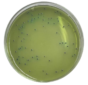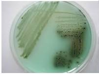 特征描述: 沙门氏菌在37℃培养18-24时后,沙门氏菌、亚利桑那菌和变形杆菌为蓝绿色至蓝色、有或无黑色中心的菌落。