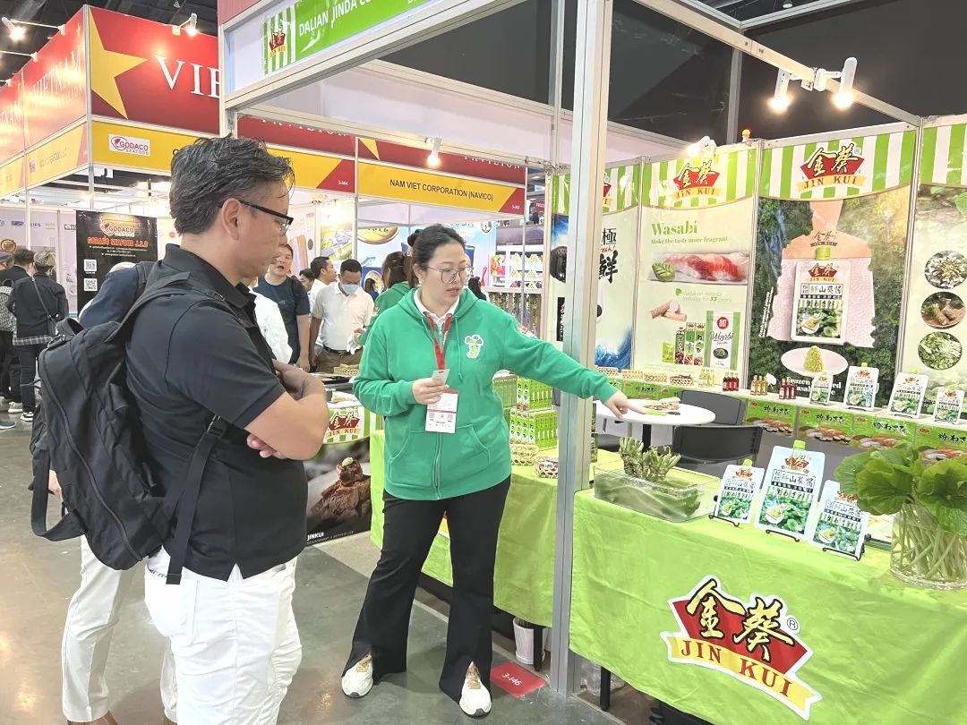 本次泰国食品展,金葵重点展示了山葵酱系列产品。“金葵山葵酱”全部以金葵自有云南山葵种植基地的山葵为原料,膳食纤维丰富,清香回甘 ,解腻提鲜,呛辣适度,辛香爽口,令人垂涎欲滴,是搭配火锅、烤肉、刺身、沙拉、饺子、面条、凉拌菜的灵魂伴侣,曾作为夏季达沃斯唯一指定专用调味品服务各国政要和商界精英,几乎适配所有中餐、西餐。