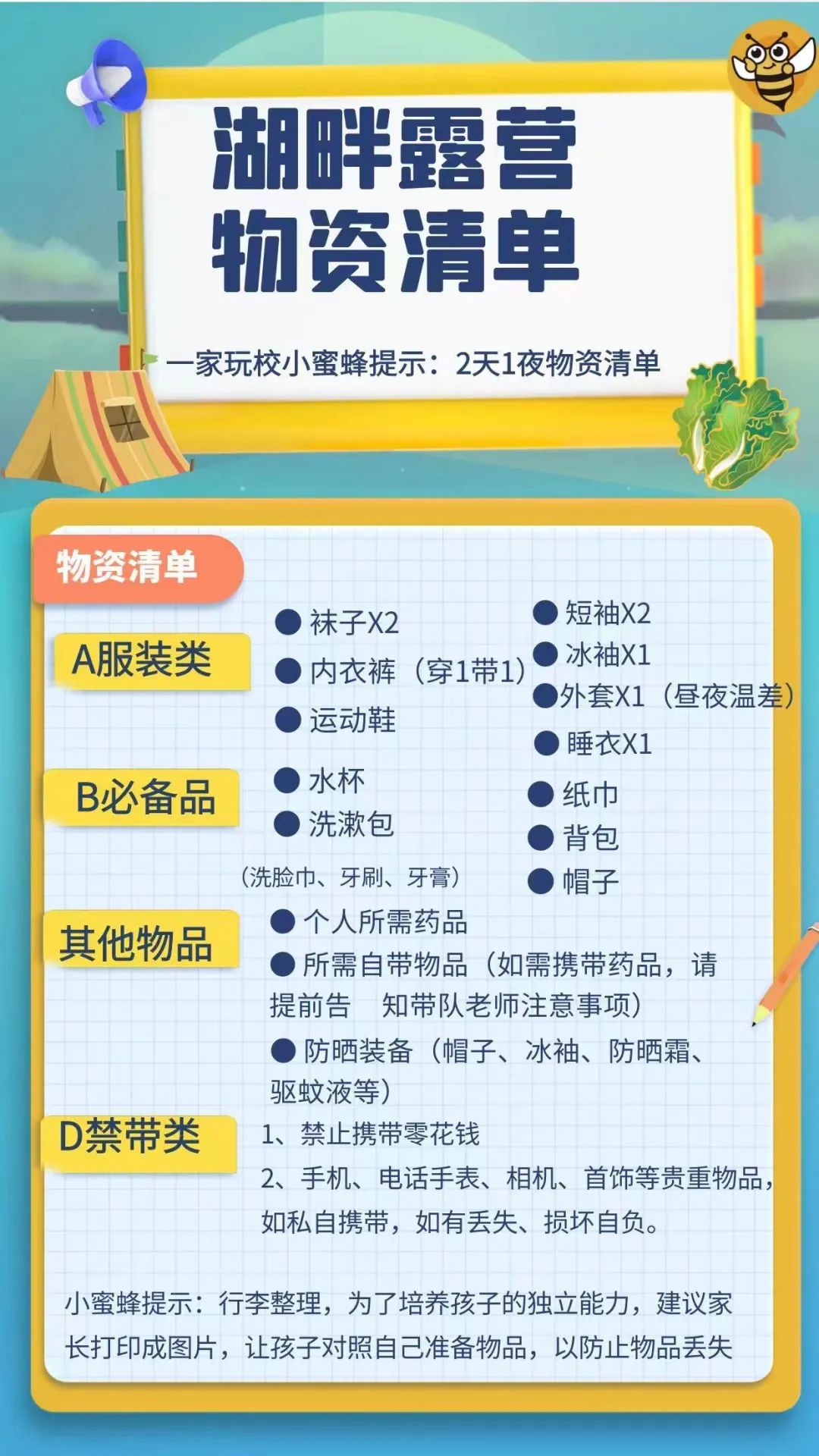 如孩子有什么致敏物、病史及身体特殊状况等个人情况要提前告知带队小蜜蜂 如遇天气情况,组织方保留调整活动顺序及个别项目的权力,活动总量不变。请相信我们的专业! 特别说明:活动期间所拍摄影像,我方具有使用权,并有权发布至相应合法平台使用。报名即视为默认并同意本活动声明,如不同意请及时联系说明哦