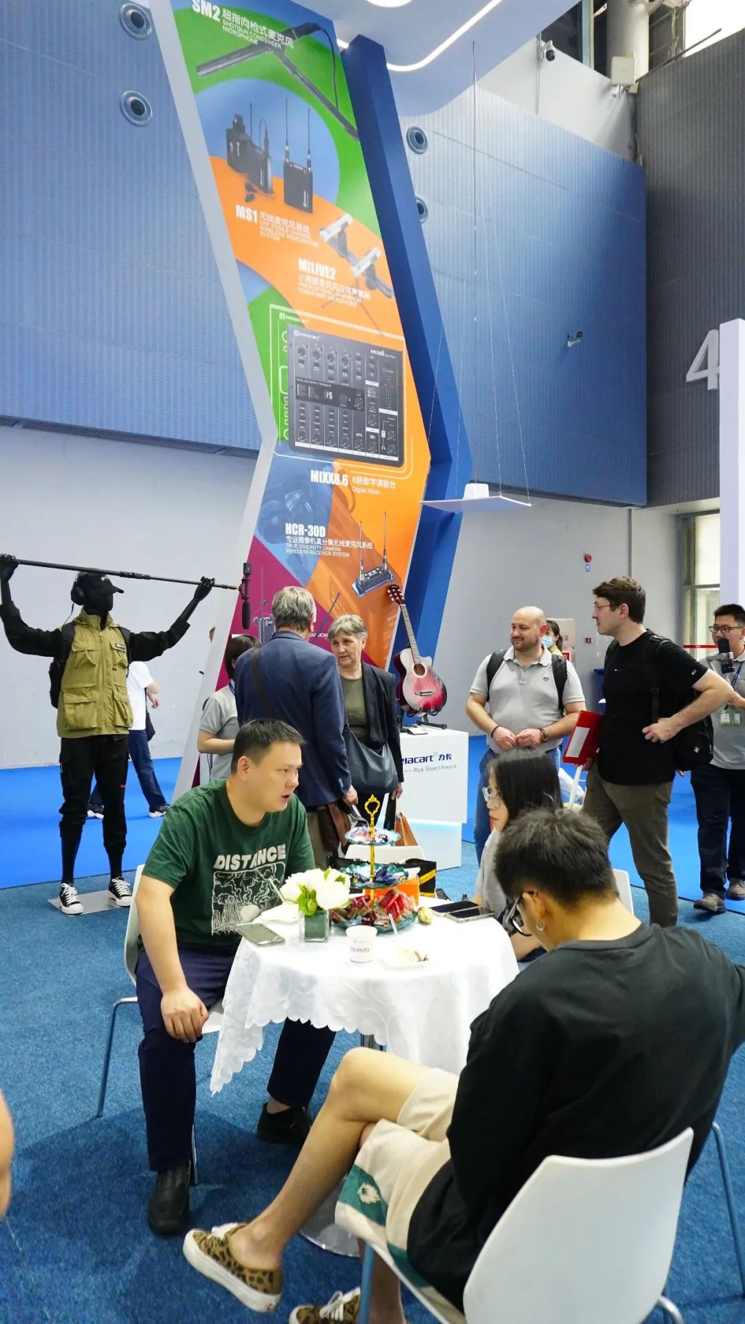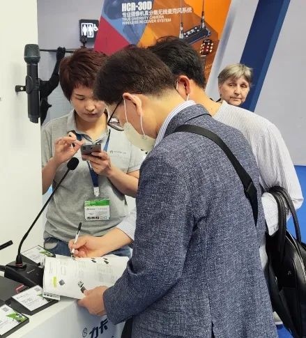 展会进行到第二日,Relacart·力卡展台前已是人满为患,并来自各地的行业人士纷纷向工作人员对产品进行了解,其中最为受欢迎的无疑是Relacart·力卡推出的新品HR-32D双通道超宽频数位混控智能无线麦克风系统。