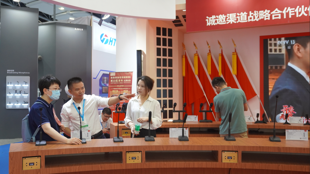 22日上午9时,会议系统国家队中科国声受邀参加由慧聪网主办的买团推介会活动,近千名行业采购商前来推介会参观交流。会上,中科国声为现场观众详细介绍了中科国声的企业背景、产品实力以及应用案例,吸引了众多买团采购商前往中科国声展位进行洽谈。