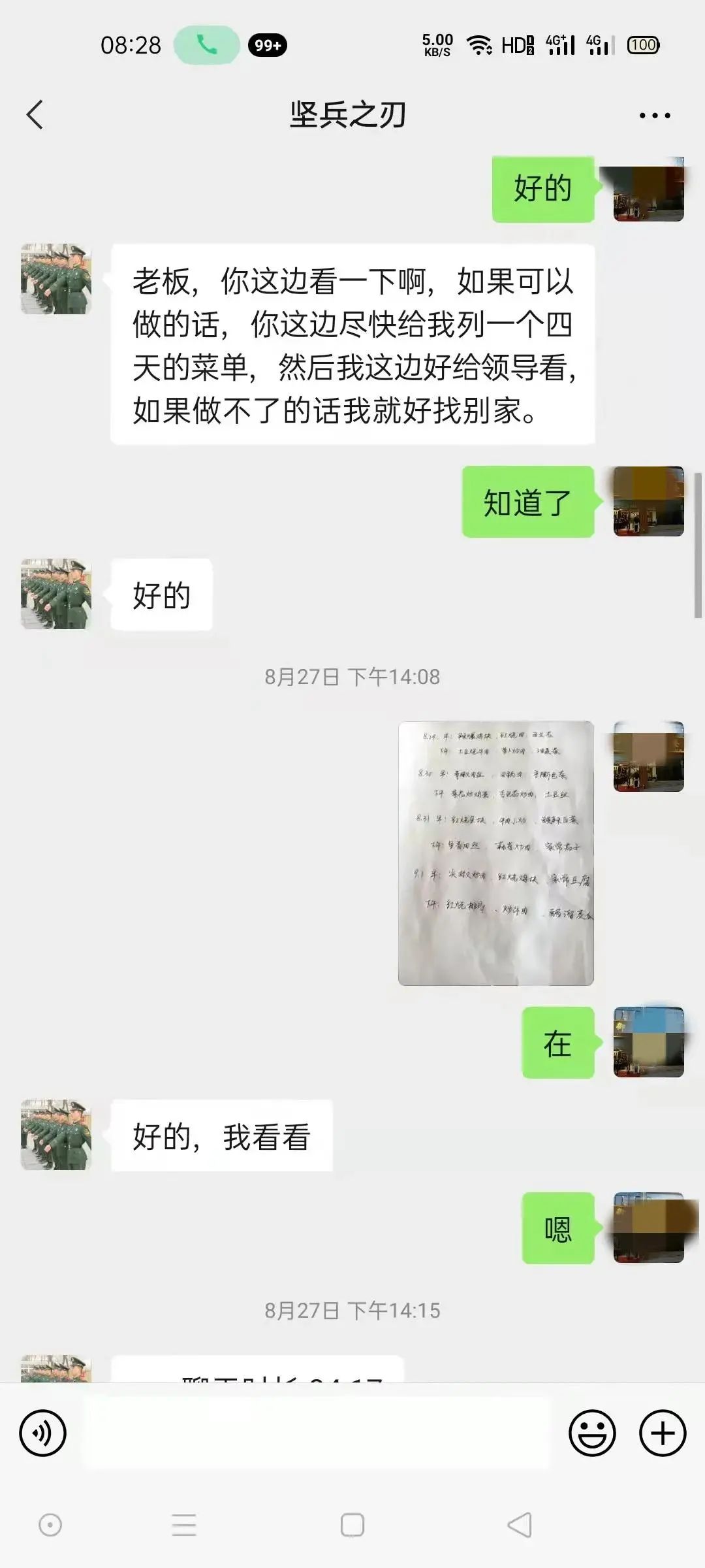 “喂,我是某部队后勤军人我们想订餐,可以详谈吗?”