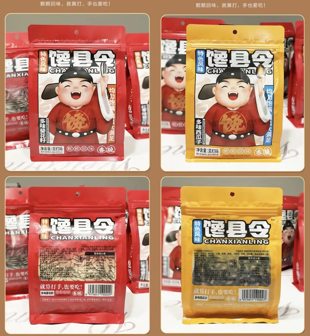 产品介绍:馋县令食品,超喜庆包装,特别适合商超打堆做特价9.9,网红爆款,销售火爆!蒜香花生更是一绝,口味香酥,复购率高。