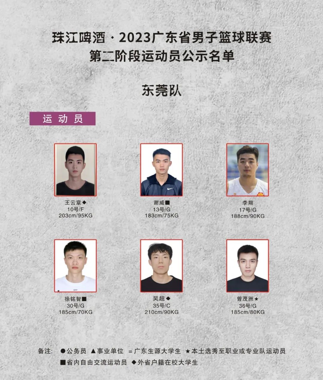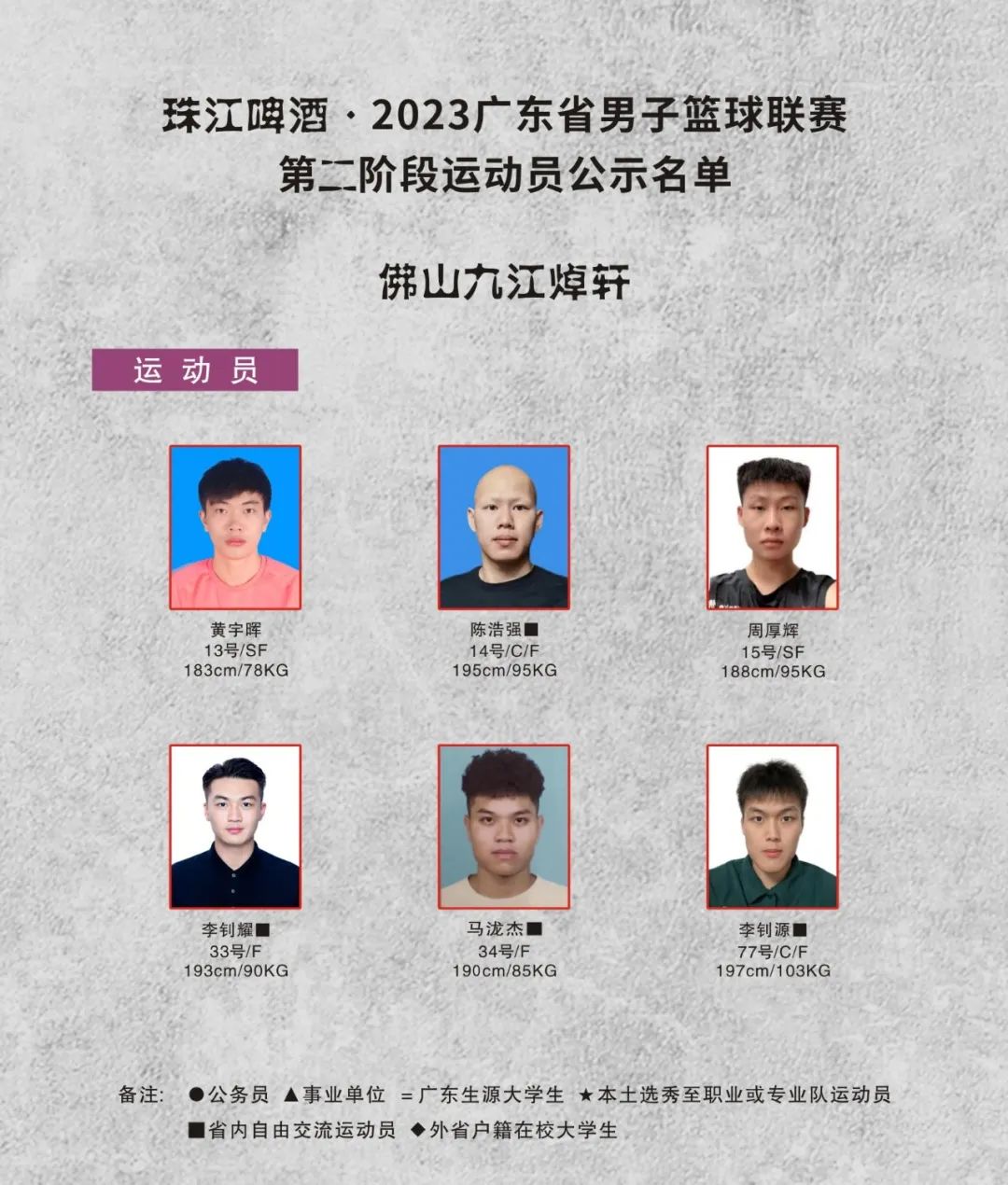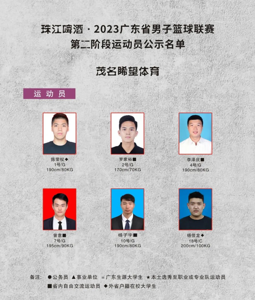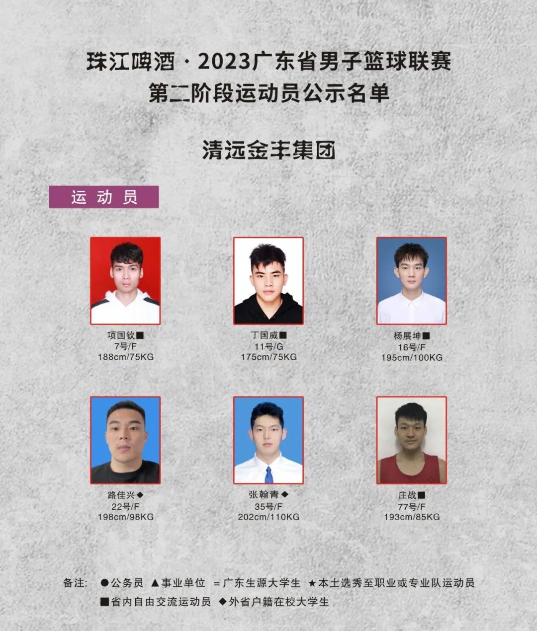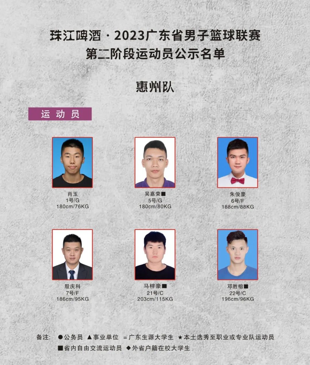 珠江啤酒·2023 广东省男子篮球联赛第二阶段运动员公示名单