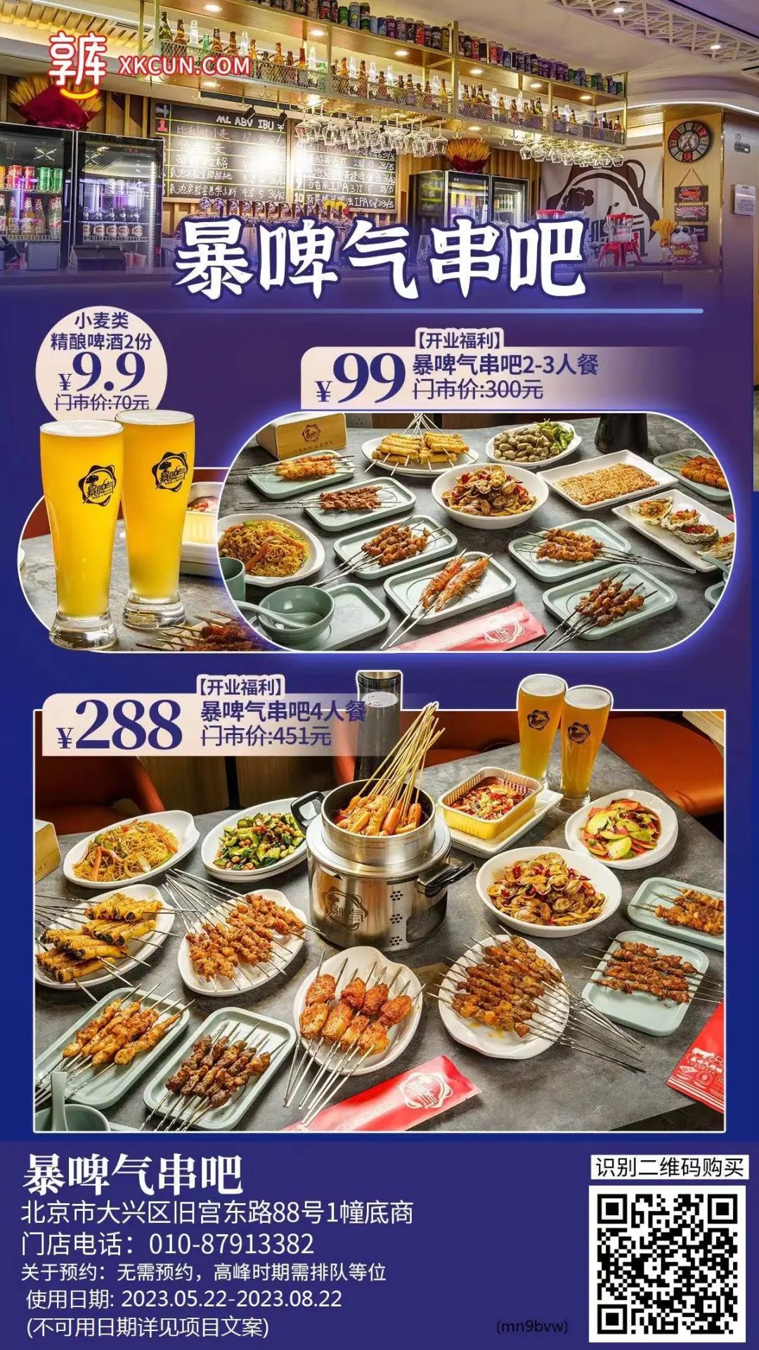暴啤气串吧|旧宫东路 9.9元精酿啤酒,99元2-3人餐,288元4人餐