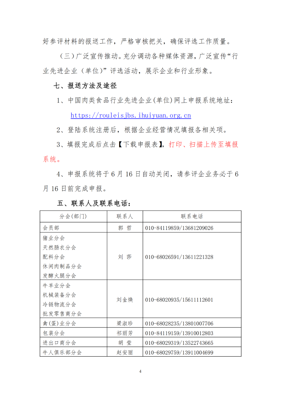 根据中国肉类协会〈2023年)15号文件关于申报先进企业的文件通知要求請有意项申报的企业按时间及条件要求申报,6月10号下班前报安徽省肉类行业协会审核上报中国肉类协会,不在另行通知,协会联系人孙静。