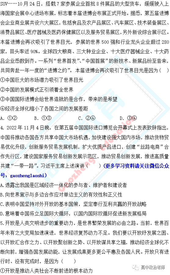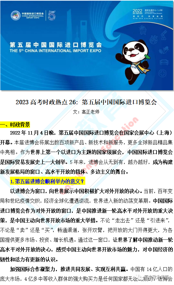2023高考热点124:第五届进博会(依据统编教材解析整理)