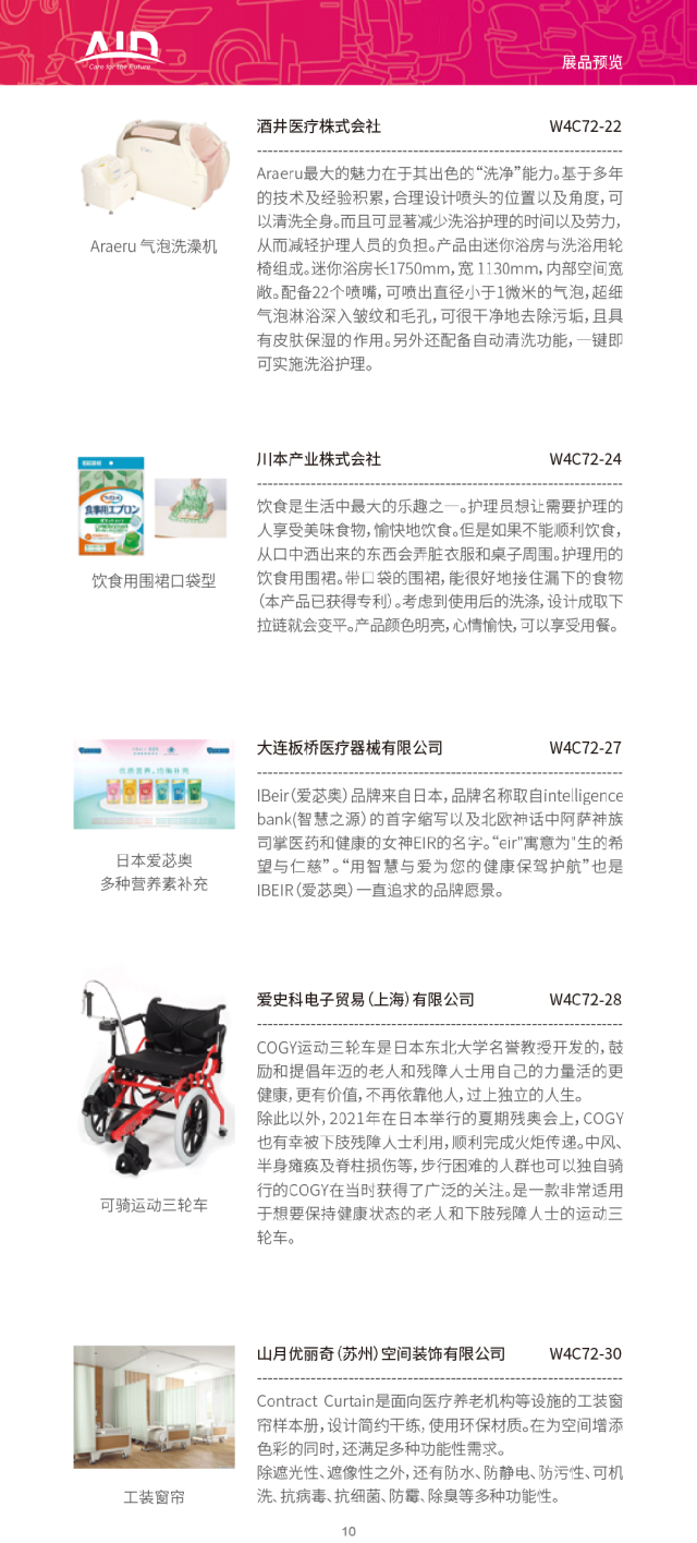截至目前,本届老博会共有来自中国、澳大利亚、比利时、德国、荷兰、美国、葡萄牙、日本、瑞典、新加坡、以色列等十多个国家和中国港澳台地区的400+品牌企业确认参展。产品类大牌松下、八乐梦、三贵、松永、河村轮椅、卫美恒、安康通、丰田旗下丰实、日本养老院易食食品头部品牌玛鲁哈日鲁等新老品牌齐聚,此外,不久前凭其智慧康养解决方案荣获“2023年爱迪生发明奖”的优必选也将亮相本届老博会;服务类名企泰康、太平、人寿堂、自在安和、华路健康、九如城、万宏、吉宝置业、金福养老、欣悦、新金桥等一线大牌齐聚,大型康养企业和连锁机构参展数量达到近年来老博会峰值。除了独立在老博会进行品牌展示的松下、唐泽、志贺&福冈、八乐梦、三贵、纳咖、松永、玛鲁哈日鲁、丰实、替多尼、研精会、纳甲、华顶,以及以日本展团的形式联合参展的东璃、日纸、大建、莎罗雅、东海、芙兰舒、河村、安寿、牛尾、鹰野,以及好玛、大金、大王、劲开等,今年老博会还将与日本贸易振兴机构(JETRO)加深合作,共同打造近300㎡的JETRO日本馆。为进一步解决长者日益增长的,对优质养老用品的需求和目前市场上养老用品零售渠道稀缺之间的矛盾,也为帮助中国养老市场搭建全新的产业增长点,今年老博会将与上海文广集团SMG旗下东方购物频道(以下简称东方购物)开展深度合作,结合老博会在我市“五五购物节”中的服务定位,打造全新的“五五养老暖心购物节”活动,并配套一块500㎡左右的“东方购物银发消费体验专区”。