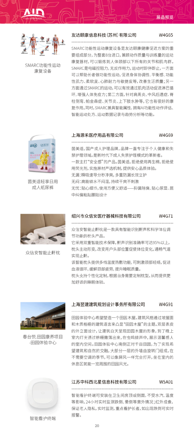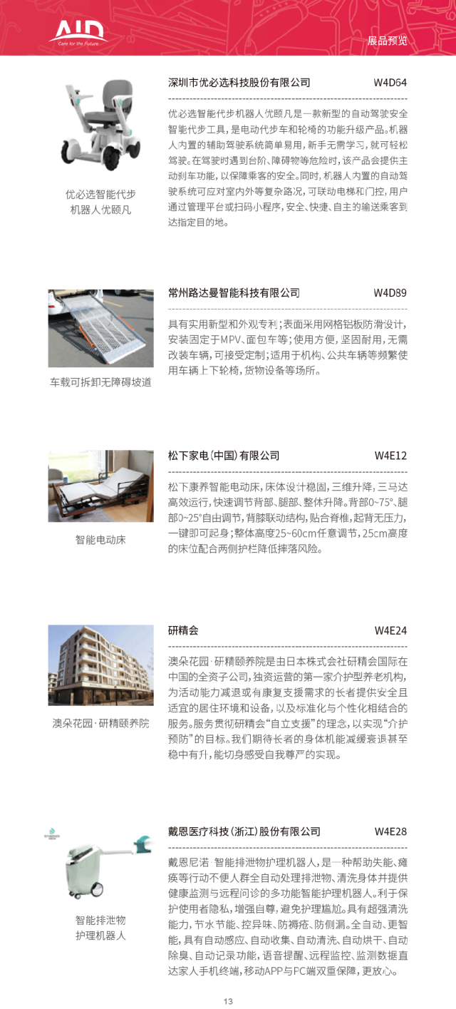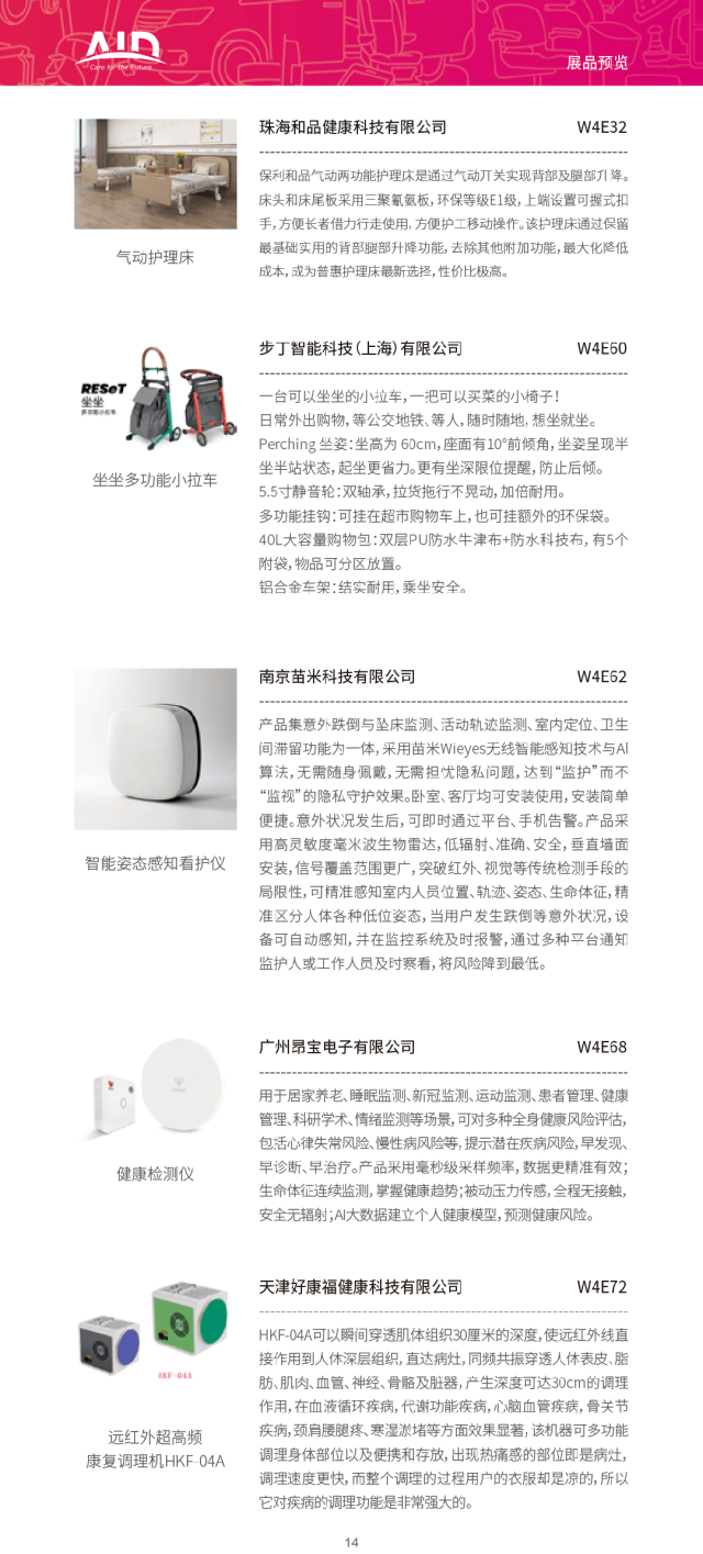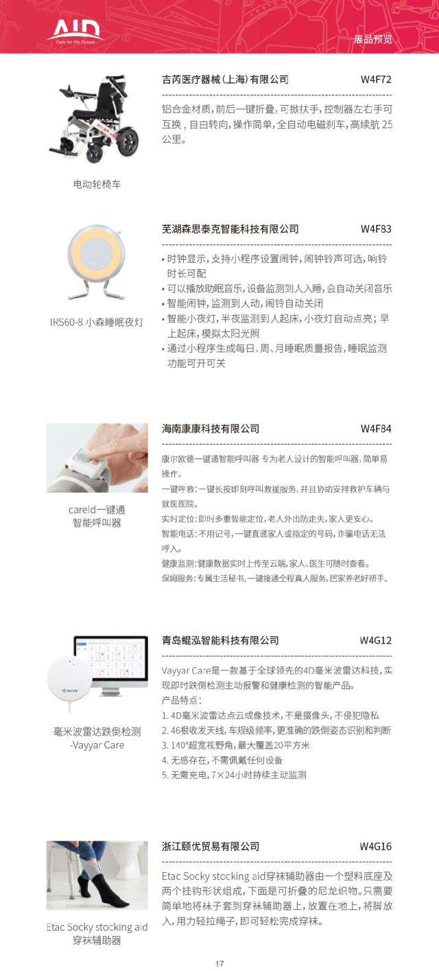 AID组委会从展商已提交的新品中精心甄选出了近200件适老产品及服务,供大家提前浏览,快来抢先看看有哪些展品将在现场亮相!