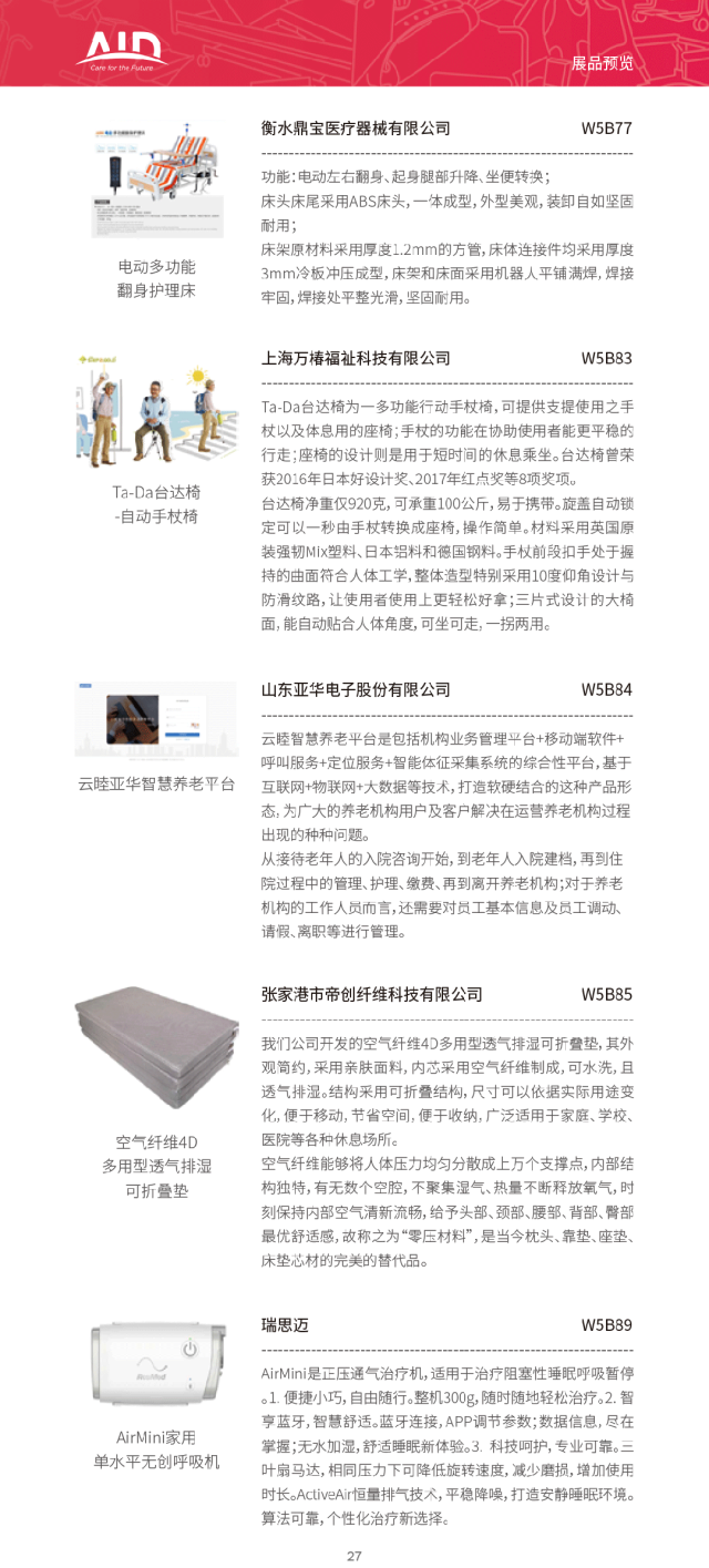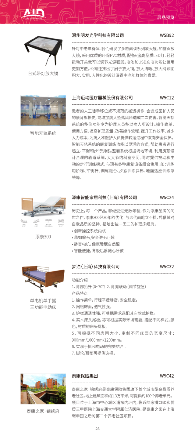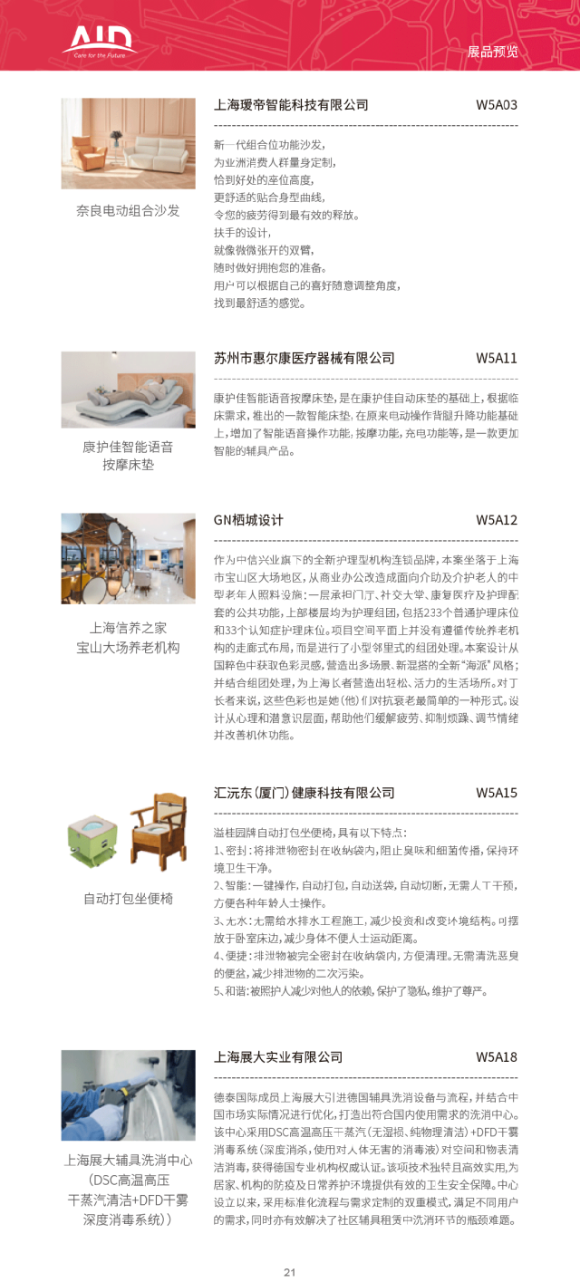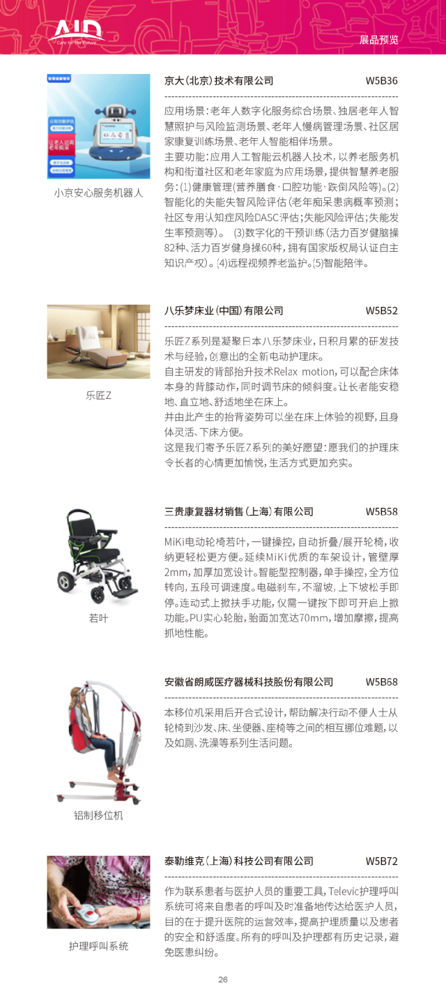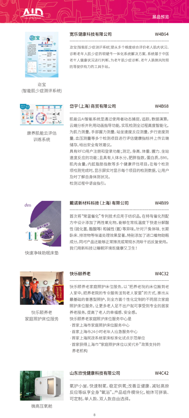 AID组委会从展商已提交的新品中精心甄选出了近200件适老产品及服务,供大家提前浏览,快来抢先看看有哪些展品将在现场亮相!