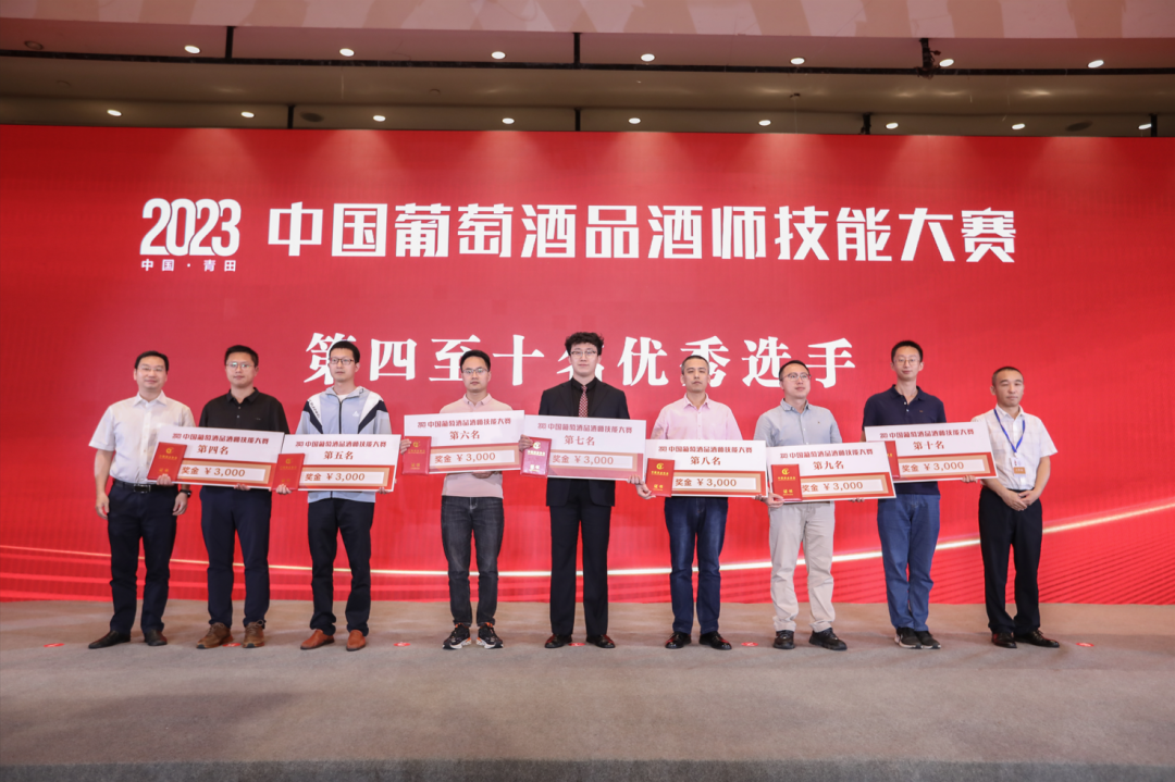 获得第4名至第10名的优秀选手,组委会给予每人3000元的奖金奖励。中国酒业协会葡萄酒分会秘书长火兴三、青田县委常委、组织部部长练如库上台为选手颁奖。